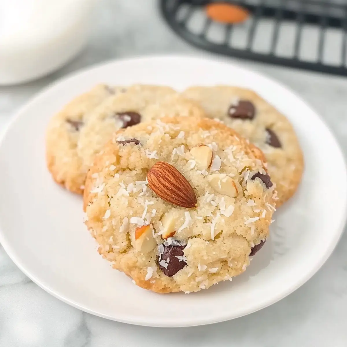 Fragrant Tea: Choose a calming herbal tea or refreshing green tea to accompany your cookies. The gentle flavors of tea complement the rich coconut and almond notes beautifully.
