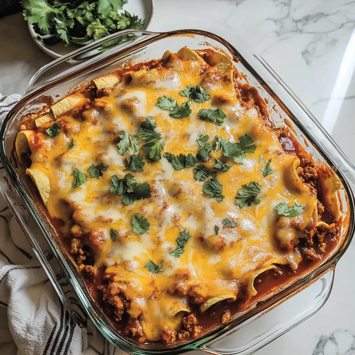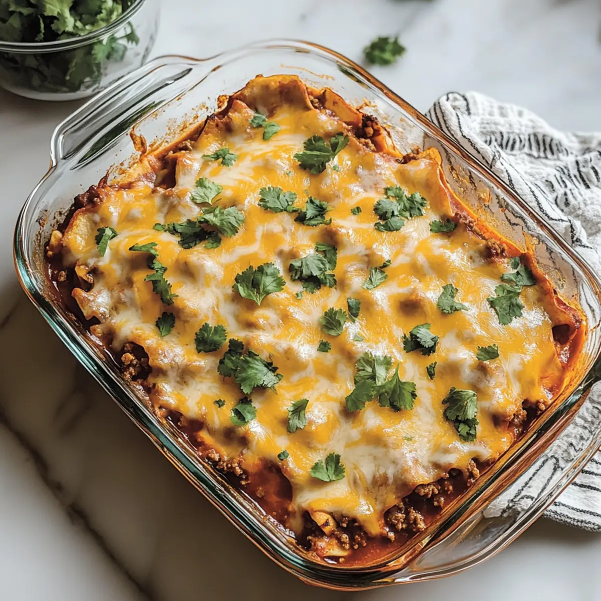 These Beef Enchilada Casserole preparations are a game-changer for busy weeknights! You can assemble the entire casserole up to 24 hours in advance. Simply prepare the layers, cover tightly with plastic wrap, and refrigerate. To maintain the casserole’s quality, consider waiting to add the cheese until just before baking; this helps prevent it from becoming overly greasy. When you’re ready to serve, preheat your oven to 350°F (175°C) and bake the casserole directly from the fridge for about 30-35 minutes until heated through and bubbly. This way, you’ll get all the comforting flavors of your Beef Enchilada Casserole without the last-minute rush!