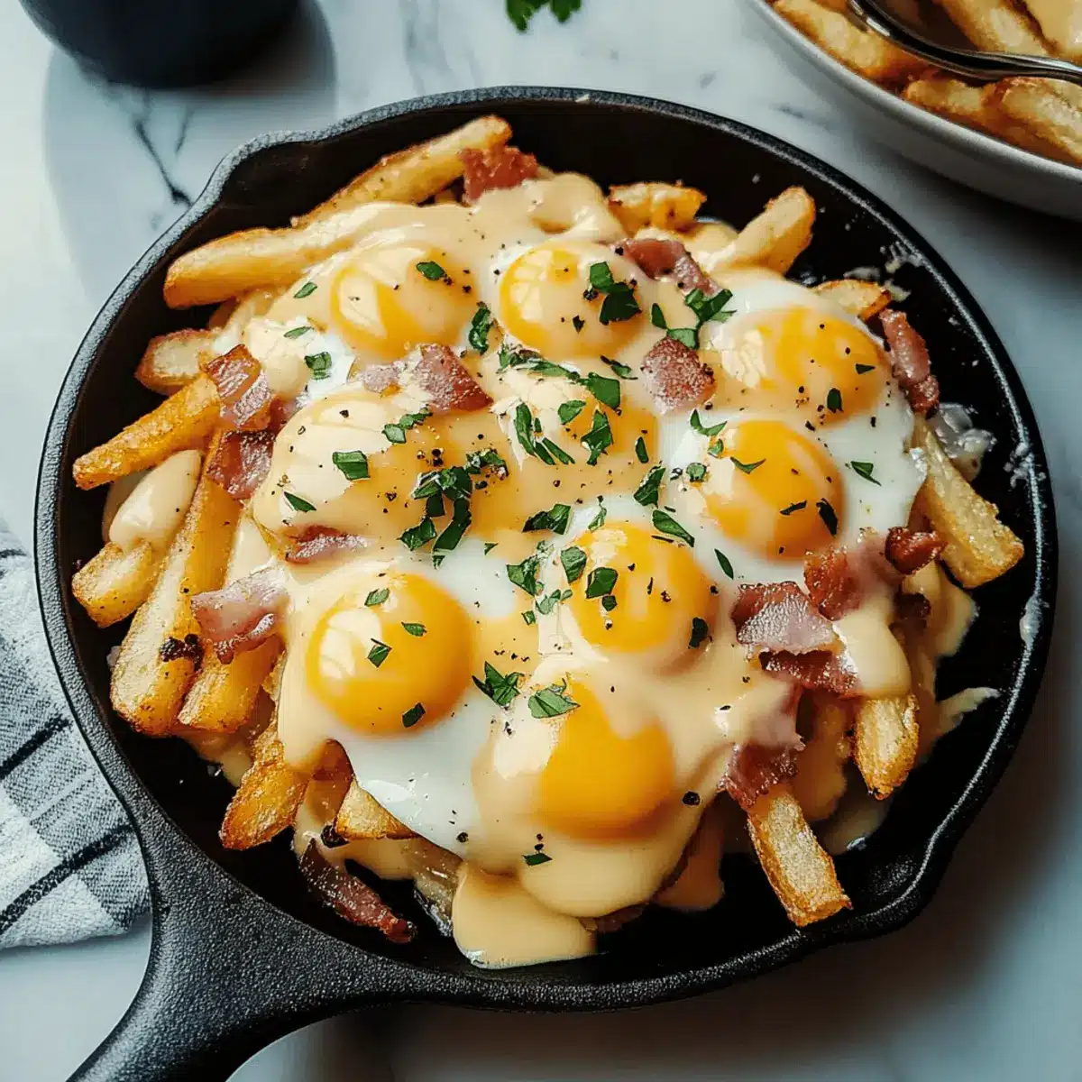 Definitely! This dish can be tailored to various dietary needs. For a vegetarian option, replace the bacon with sautéed mushrooms or crispy tempeh. If you’re concerned about allergies, ensure to check for any dairy substitutes for the cheeses and gravies used. Also, opt for gluten-free gravies if you have gluten sensitivities.