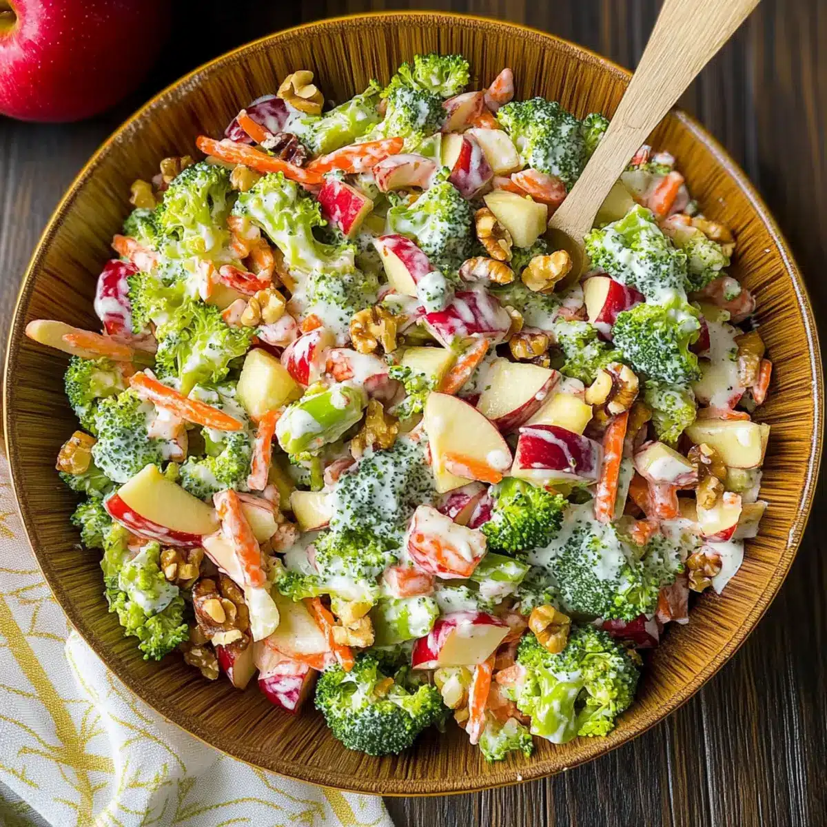 Chop Wisely: Ensure broccoli is cut into smaller, bite-sized pieces to enhance flavor absorption and create a pleasing texture in your Broccoli Apple Salad.