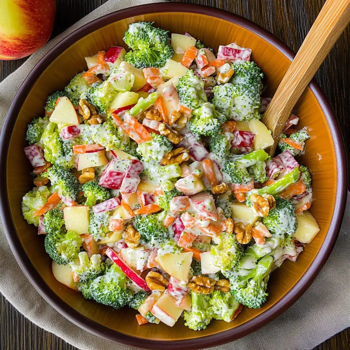 The crunch of fresh broccoli and the crisp sweetness of apples dance together in a bowl, creating a salad that’s as energizing as it is delicious. My go-to recipe, this Broccoli Apple Salad, is a true gem for fall gatherings or a light lunch at home. What I love most is how quick it is to prepare—perfect for those busy days when you crave something nutritious without spending hours in the kitchen. Plus, the creamy Greek yogurt dressing offers a lighter take that won’t weigh you down. Whether you’re hosting friends or simply looking to brighten up your everyday meals, this colorful salad is a vibrant addition that promises to satisfy. Ready to discover how to whip this delightful dish together?