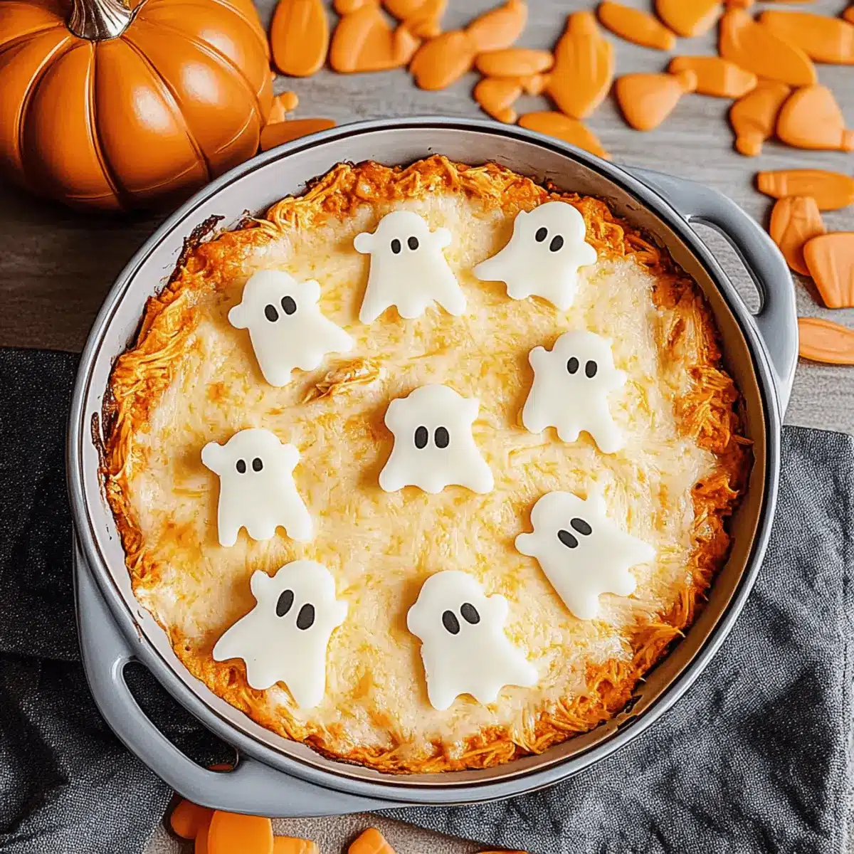 Creamy Halloween Buffalo Chicken Dip with Ghostly Charm