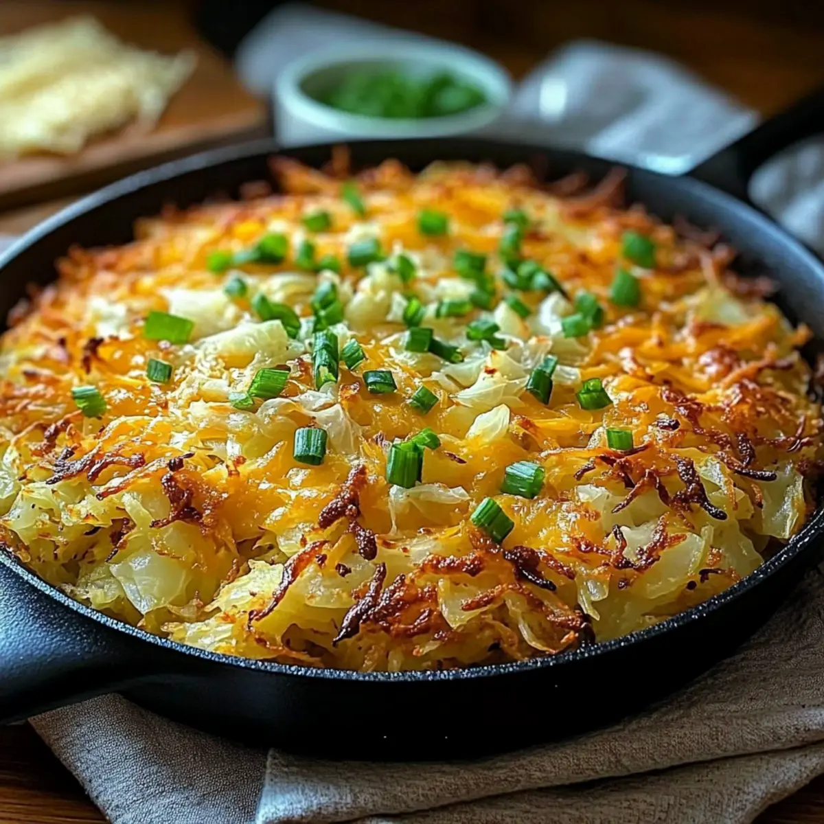Crispy Irish Cheddar & Cabbage Hash Brown Skillet Delight