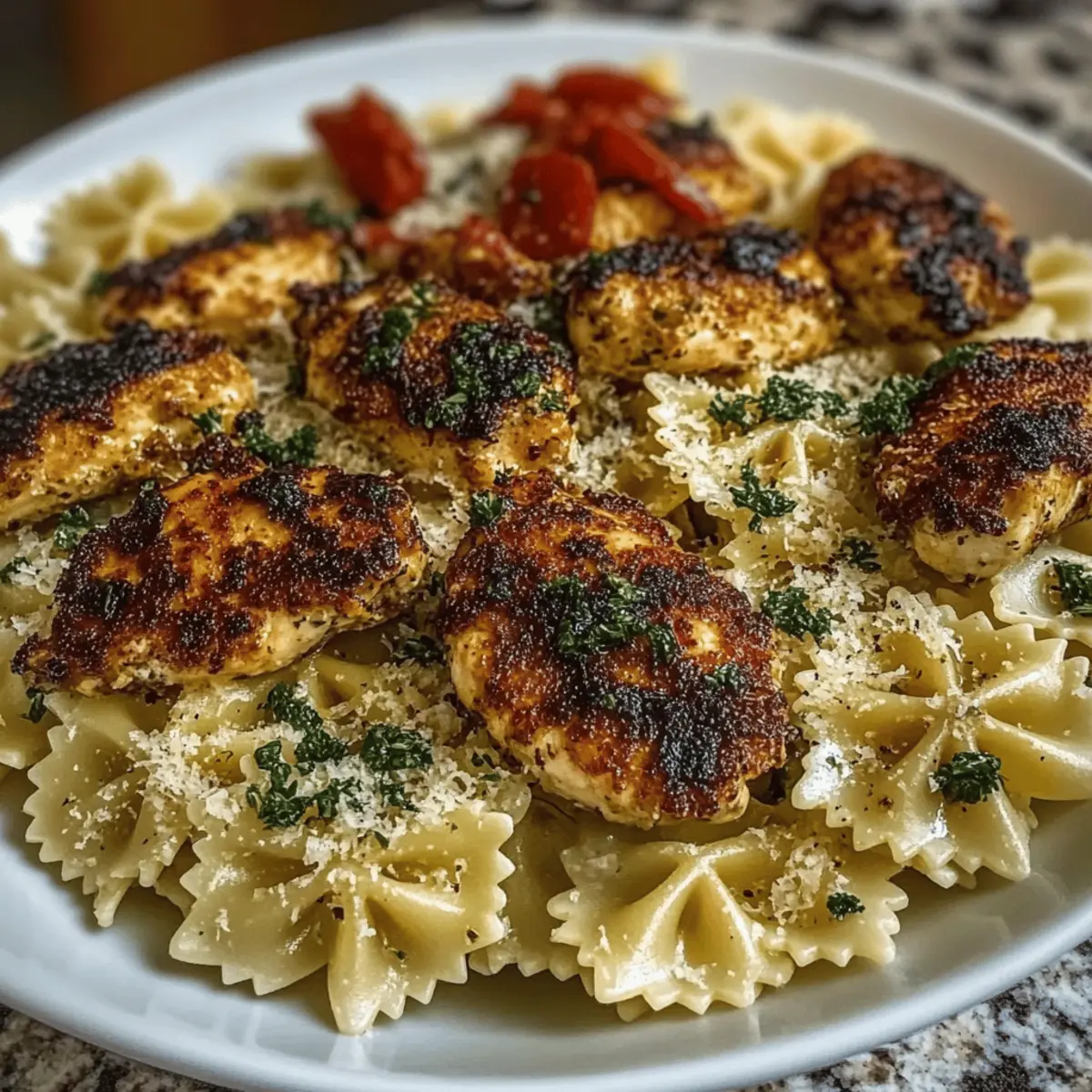 Cheesy Bowtie Pasta with Garlic Parmesan Chicken Bliss
