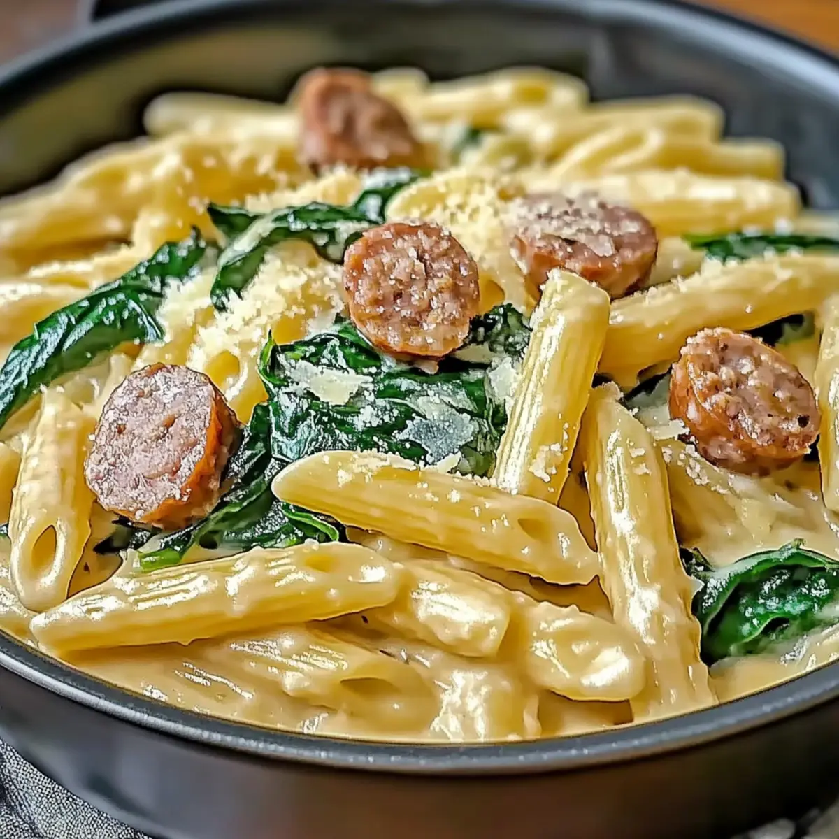 One-Pan Creamy Penne with Spinach and Italian Sausage Magic