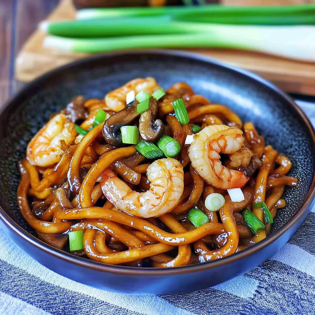 Savor Quick Yaki Udon with Shrimp in Just 20 Minutes