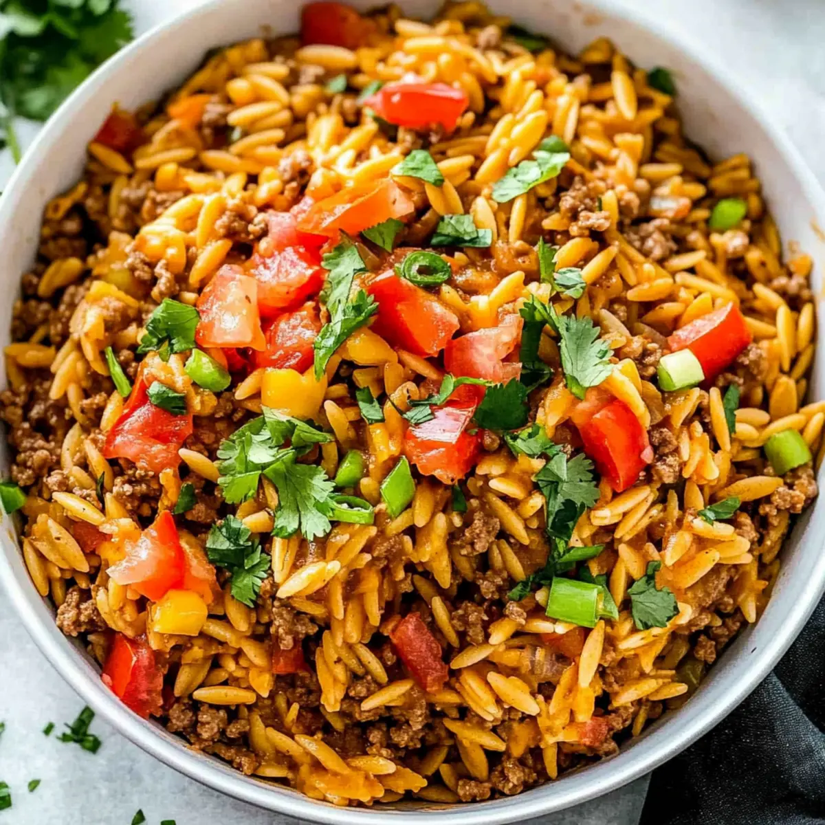 One Pot Cheesy Taco Orzo for Cozy Family Nights