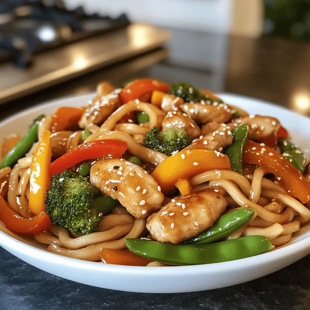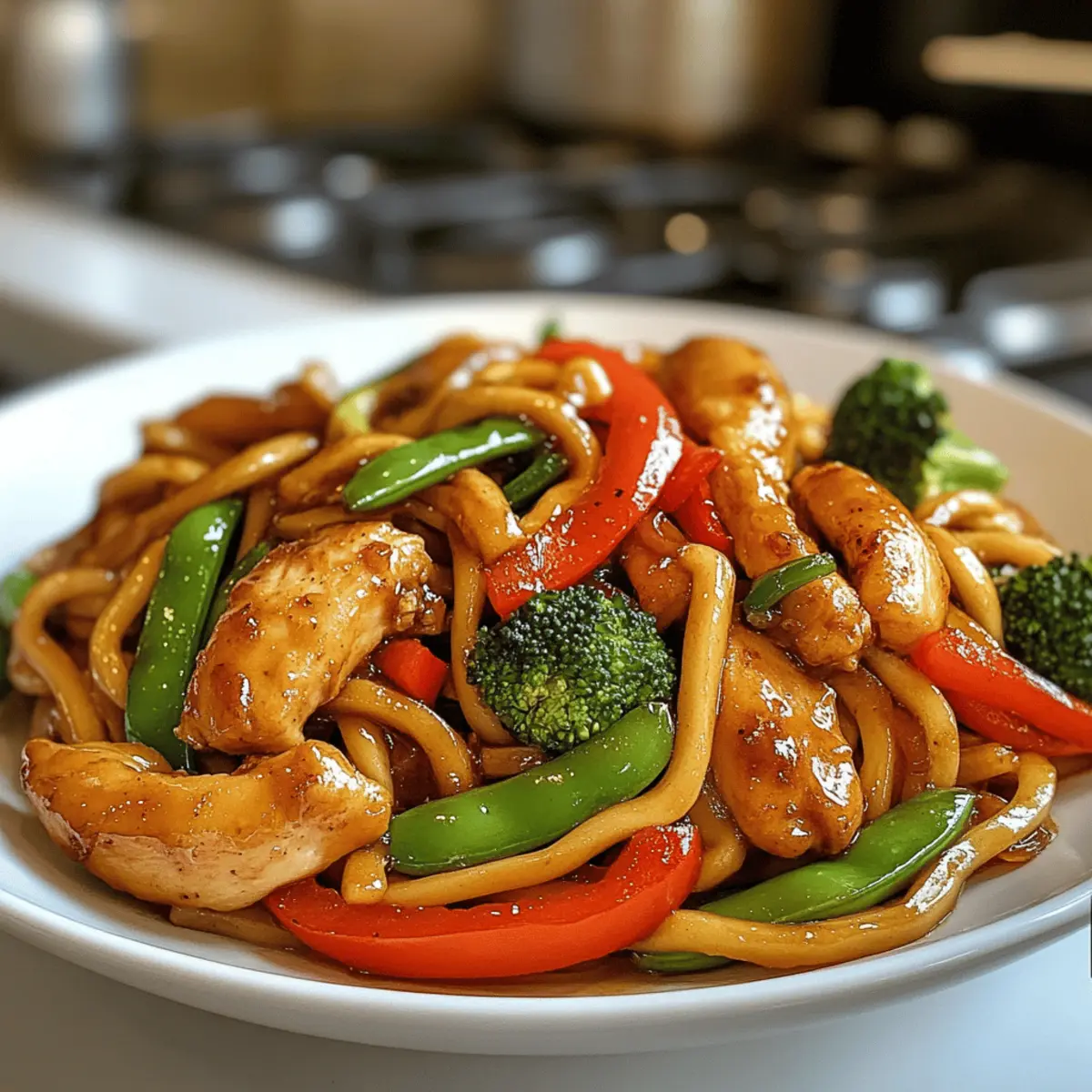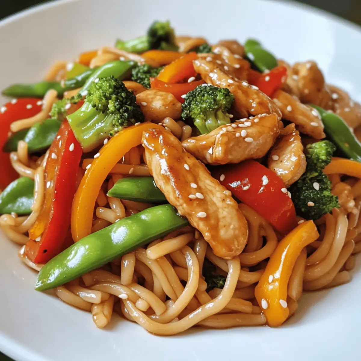 Begin by slicing the boneless, skinless chicken breasts into thin strips, ensuring they cook quickly and evenly. Chop your choice of vibrant vegetables such as bell peppers, snap peas, and broccoli into bite-sized pieces. Meanwhile, cook the noodles according to package instructions in a large pot of boiling water, usually taking about 3-5 minutes until al dente, then drain and set aside.