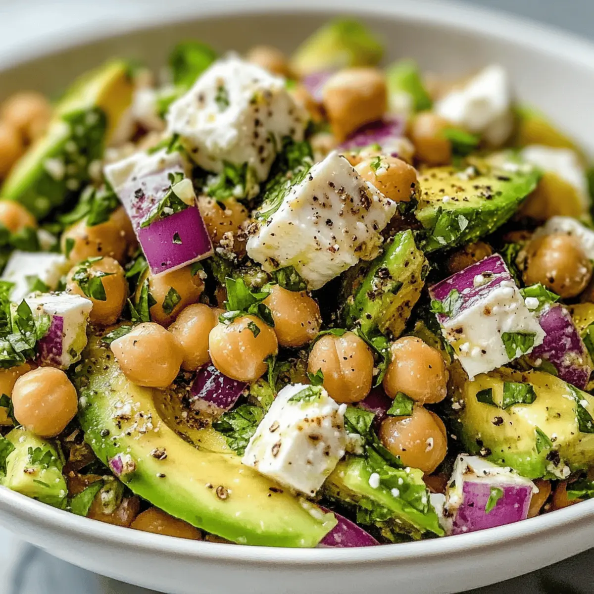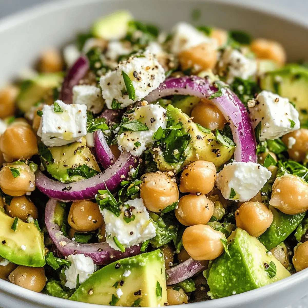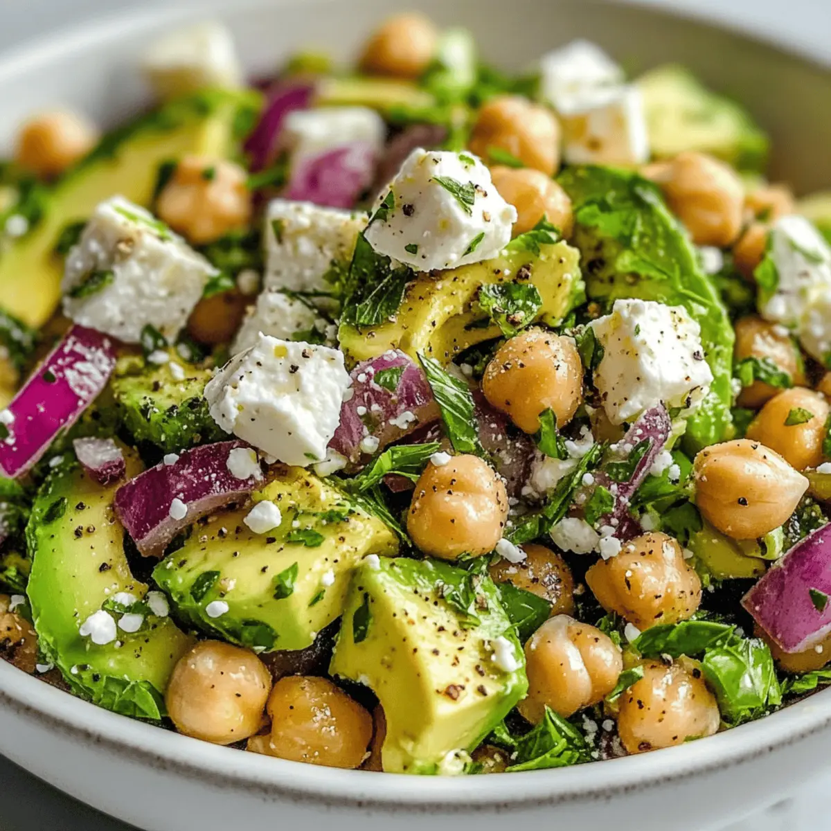 Vibrant, Flavorful Medley: Each bite of this Chickpea Feta Avocado Salad bursts with a refreshing combination of creamy avocado, crumbly feta, and hearty chickpeas.