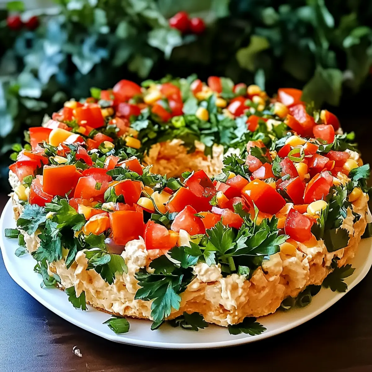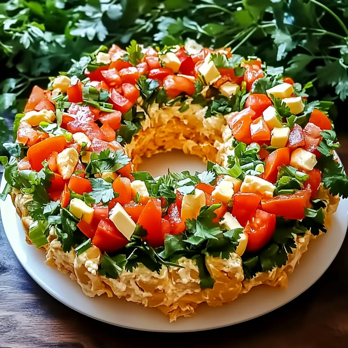 Versatile Toppings: Feel free to customize with additional garnishes like chopped olives or corn; this wreath can be made to suit any taste preference!