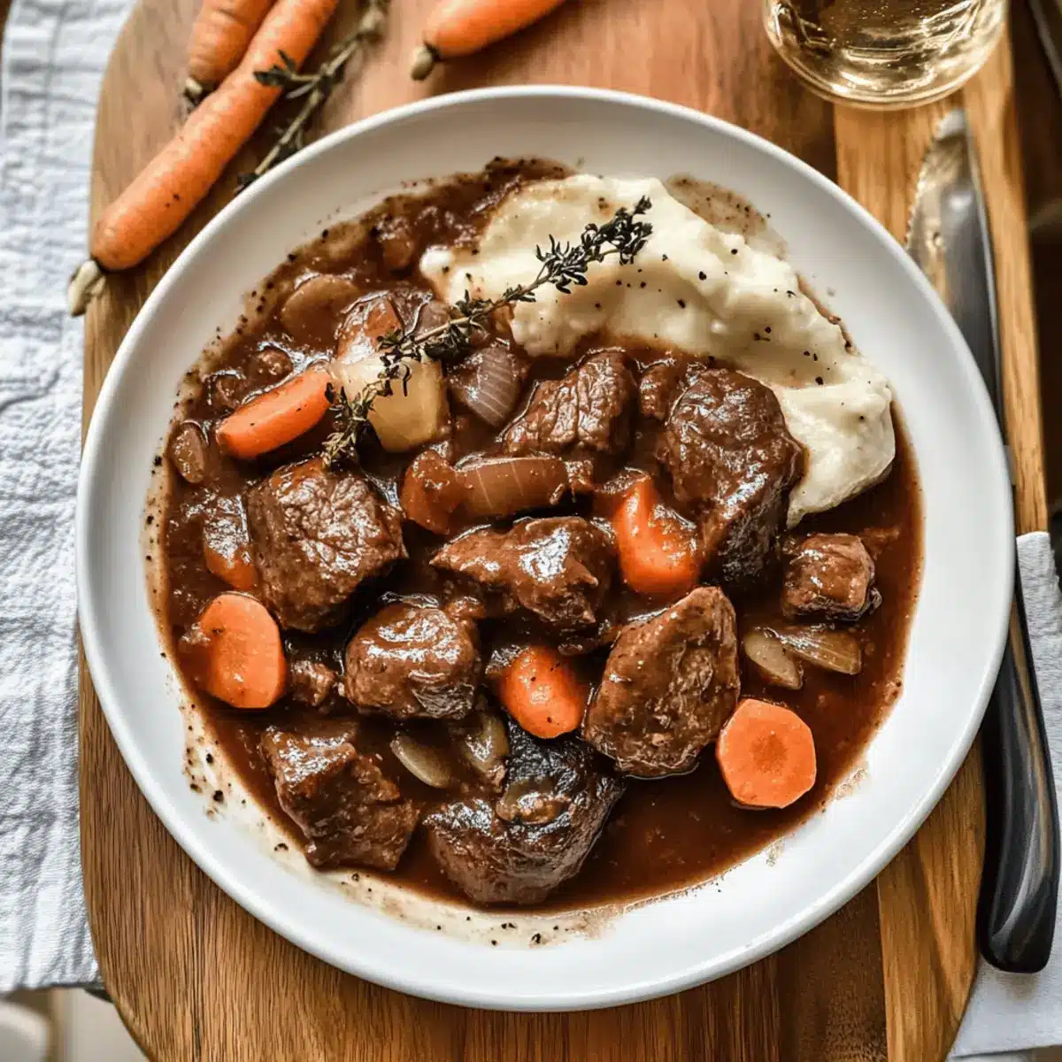Yes! If you’re making this dish for someone with dietary restrictions, you can easily customize it. To make it gluten-free, substitute the flour with cornstarch for thickening. Additionally, for a lighter version, you can opt for low-fat beef cuts or replace the pork with turkey bacon or omit it entirely for a non-pork option.
