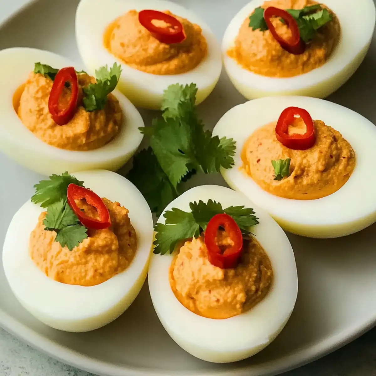Visual Appeal: Topped with vibrant garnishes like Thai red chili and cilantro, these eggs are sure to catch the eye at any party.