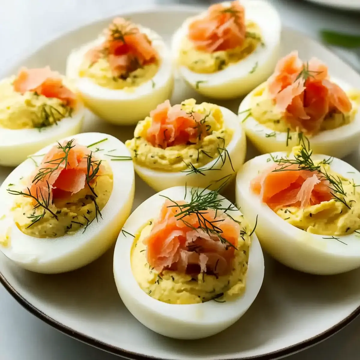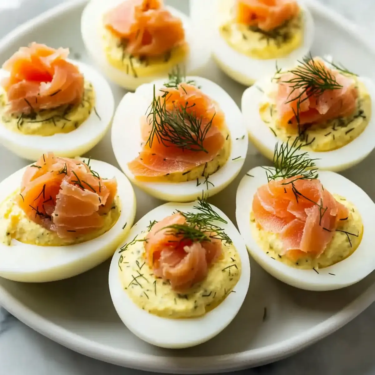- Smoked Salmon – Elevates these deviled eggs with its unique taste; try cooked bacon for a twist.