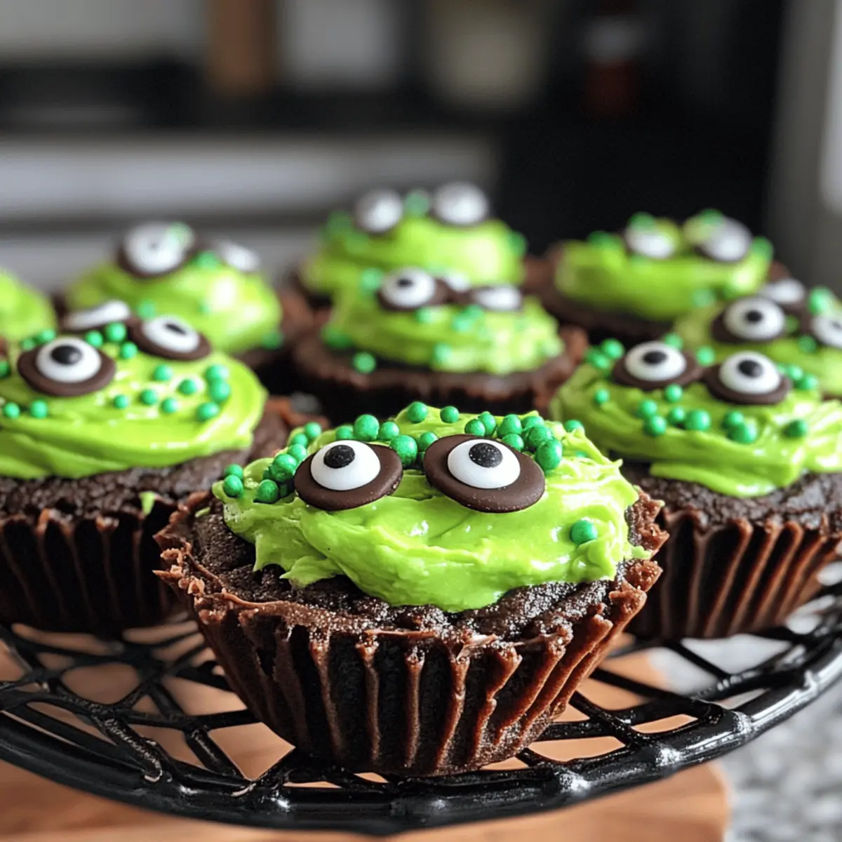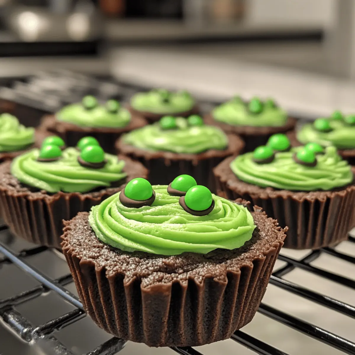 Transfer the green buttercream into a piping bag fitted with a round tip. Pipe the frosting generously into each cooled cookie cup, allowing it to overflow slightly—this adds to the cauldron effect. Take your time to make sure each one looks perfectly whimsical while giving your treats a fun presentation!