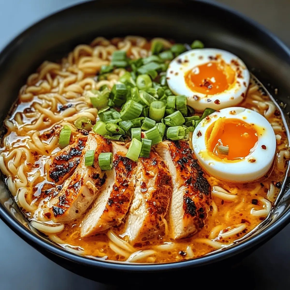 Garnish Is Key: Don’t skip the scallions or soft-boiled eggs as they add freshness and richness, elevating your Fiery Chicken Ramen presentation.