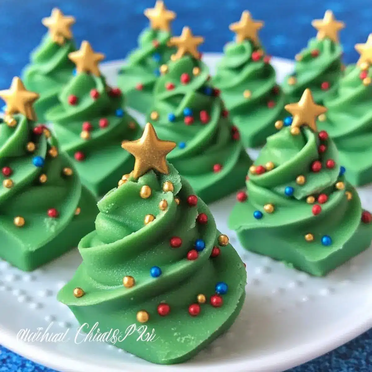 Immediately after piping each fudge tree, sprinkle with rainbow nonpareils for festive flair. To add an extra special touch, place a gold star sprinkle on the top of each tree. This decoration not only enhances the visual appeal but also brings a pop of color to your delicious fudge Christmas trees.