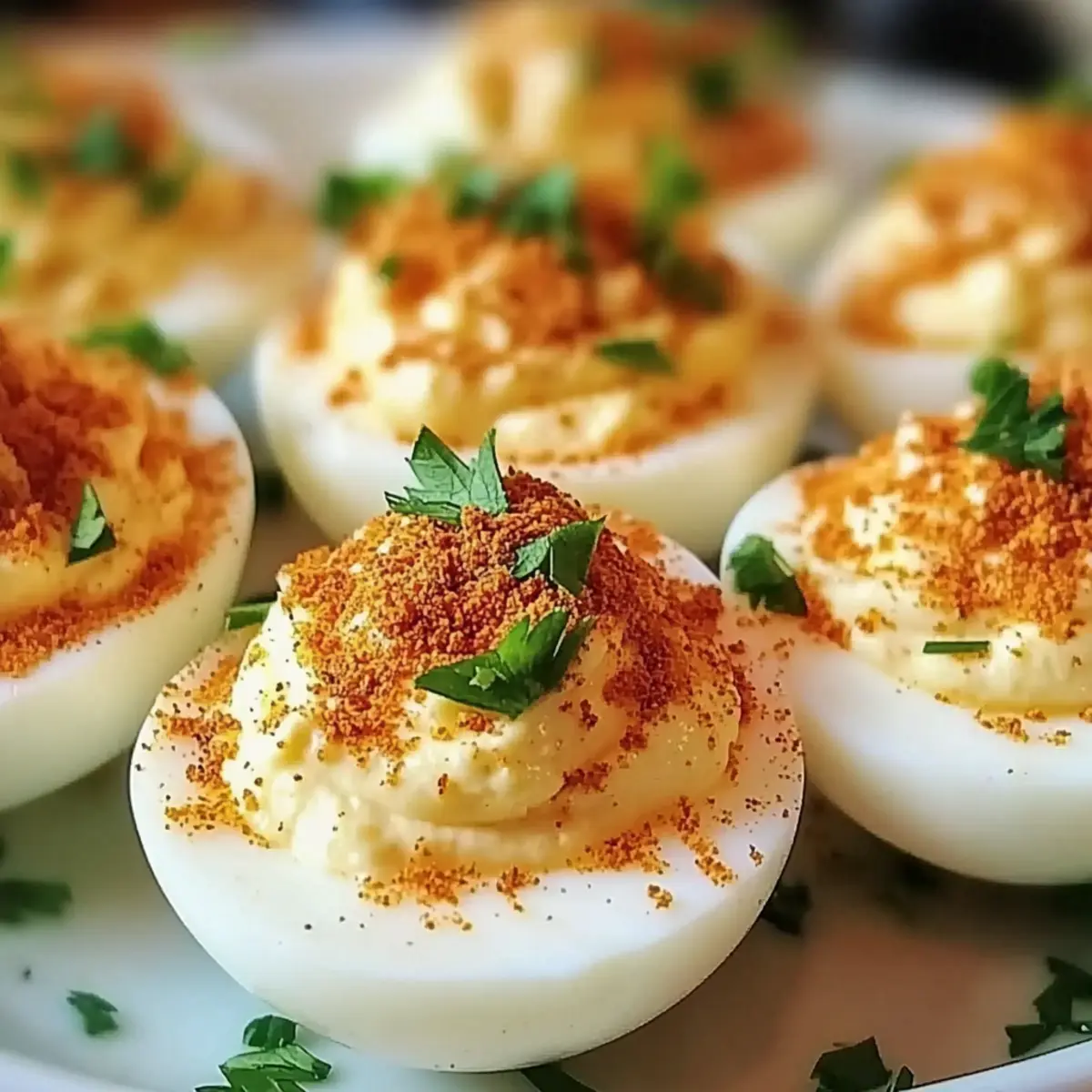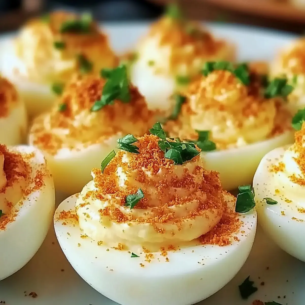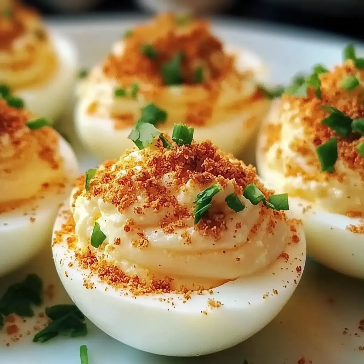Crispy Bacon Topping: Top with crumbled bacon for that extra crunch and savory goodness. This classic addition will make your deviled eggs irresistible.