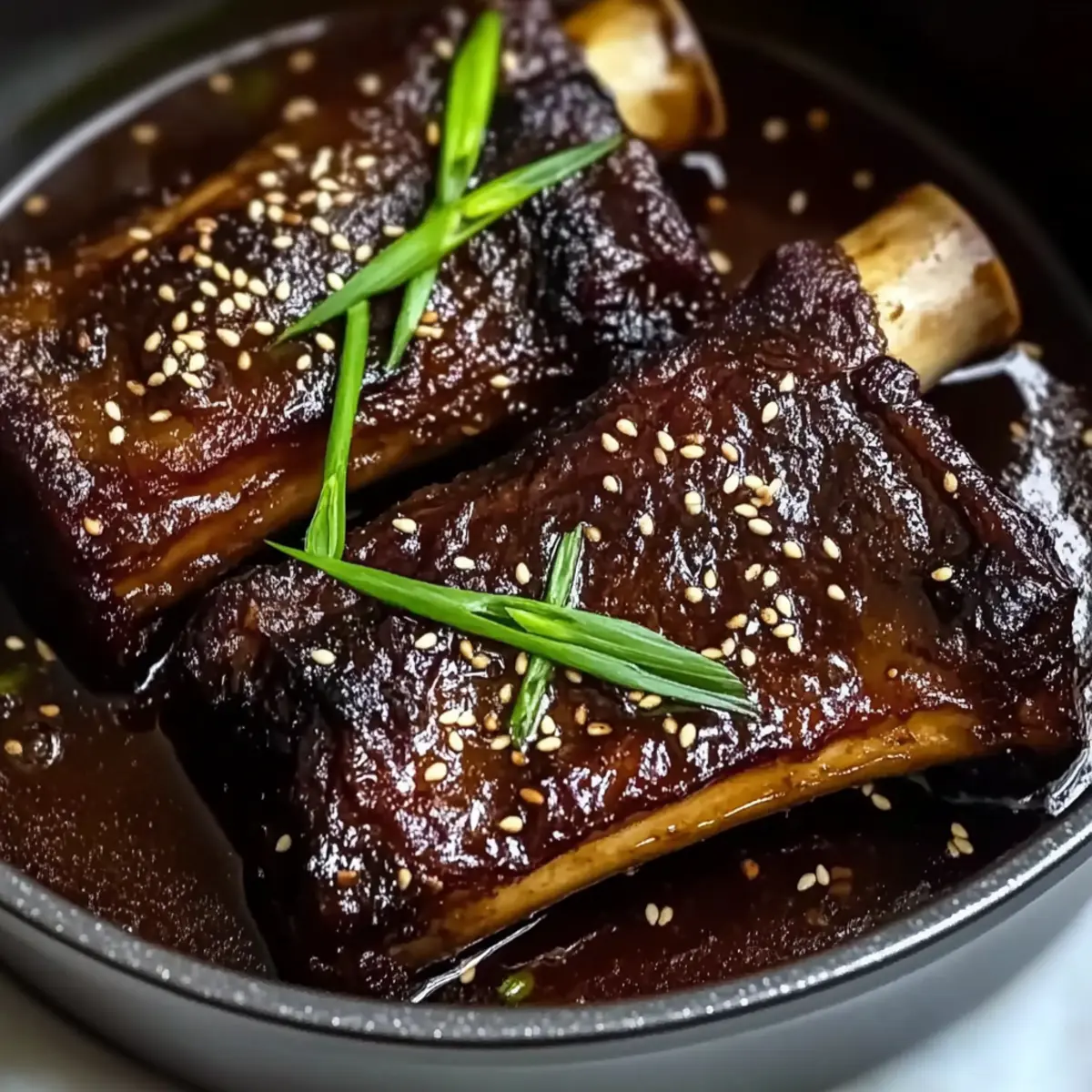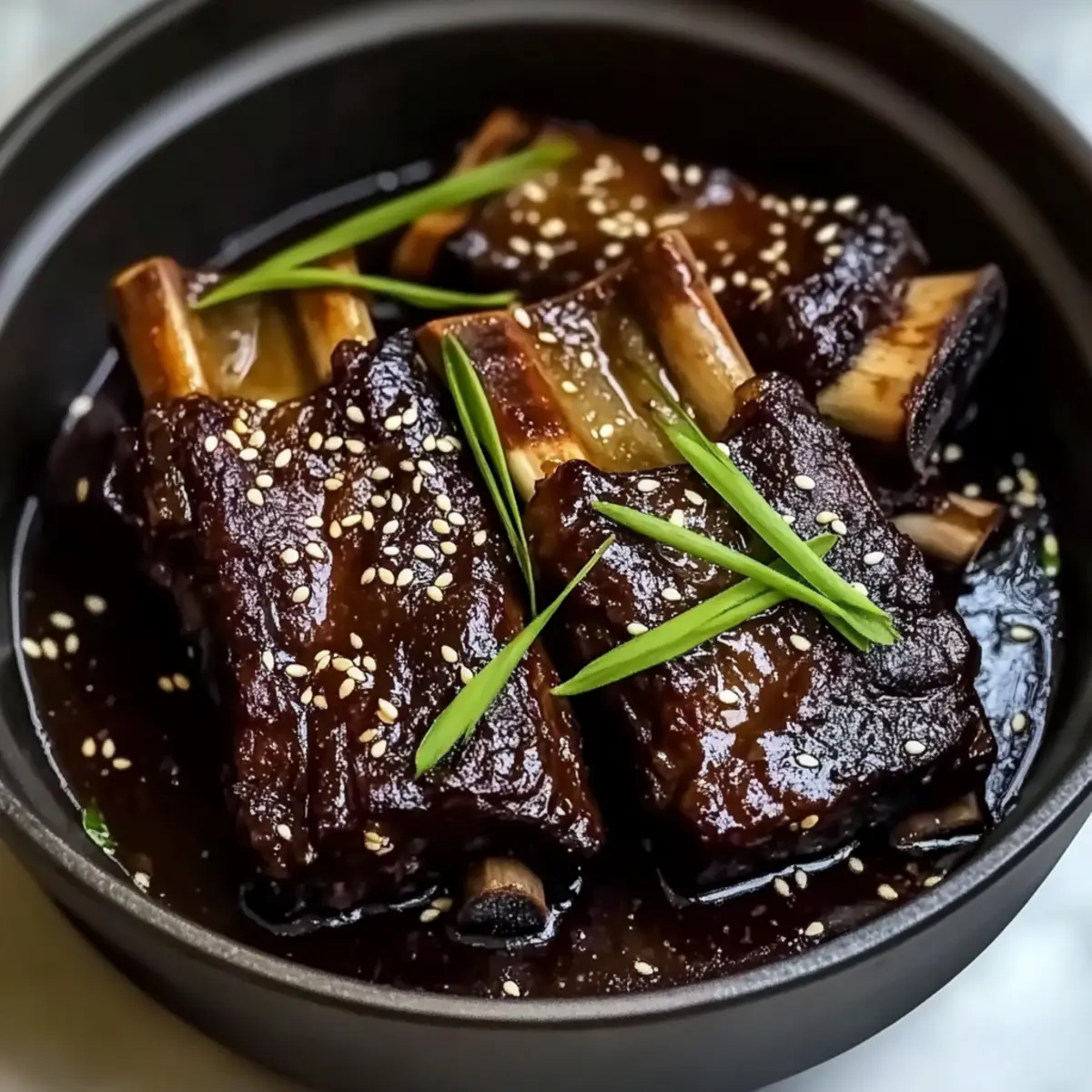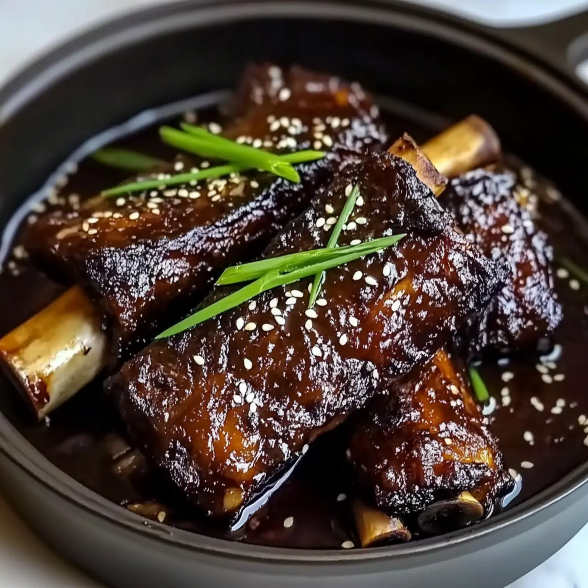 - Return ribs to the pot, let them soak in the thickened sauce before serving garnished with green onions and sesame seeds.