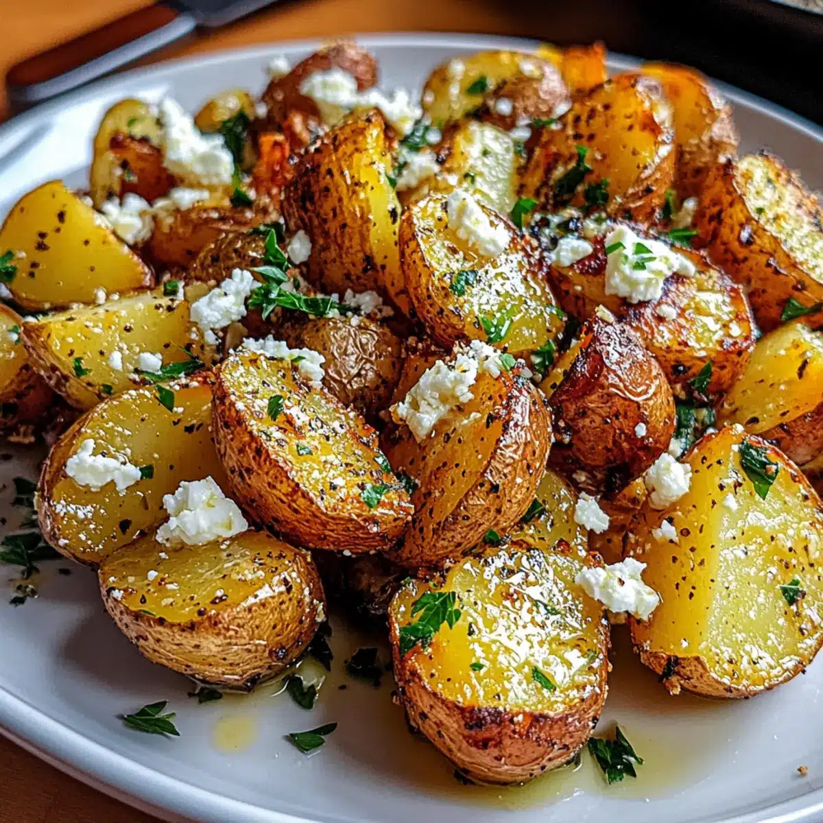 The aroma of crispy roasted potatoes wafts through the kitchen, instantly transporting you to a sun-drenched Mediterranean terrace. I’ve been perfecting my Greek Feta Roast Potatoes, a dish that captures the essence of comfort food with every crunchy bite. This easy side dish is not only beginner-friendly but also a true crowd-pleaser. The tender Yukon Golds meld beautifully with zesty lemon and fragrant garlic, while rich, creamy feta elevates the dish to something truly special. Whether you’re looking to impress guests or simply craving something hearty yet simple, these potatoes tick all the boxes. Curious how to make this delightful treat? Let’s dive in!