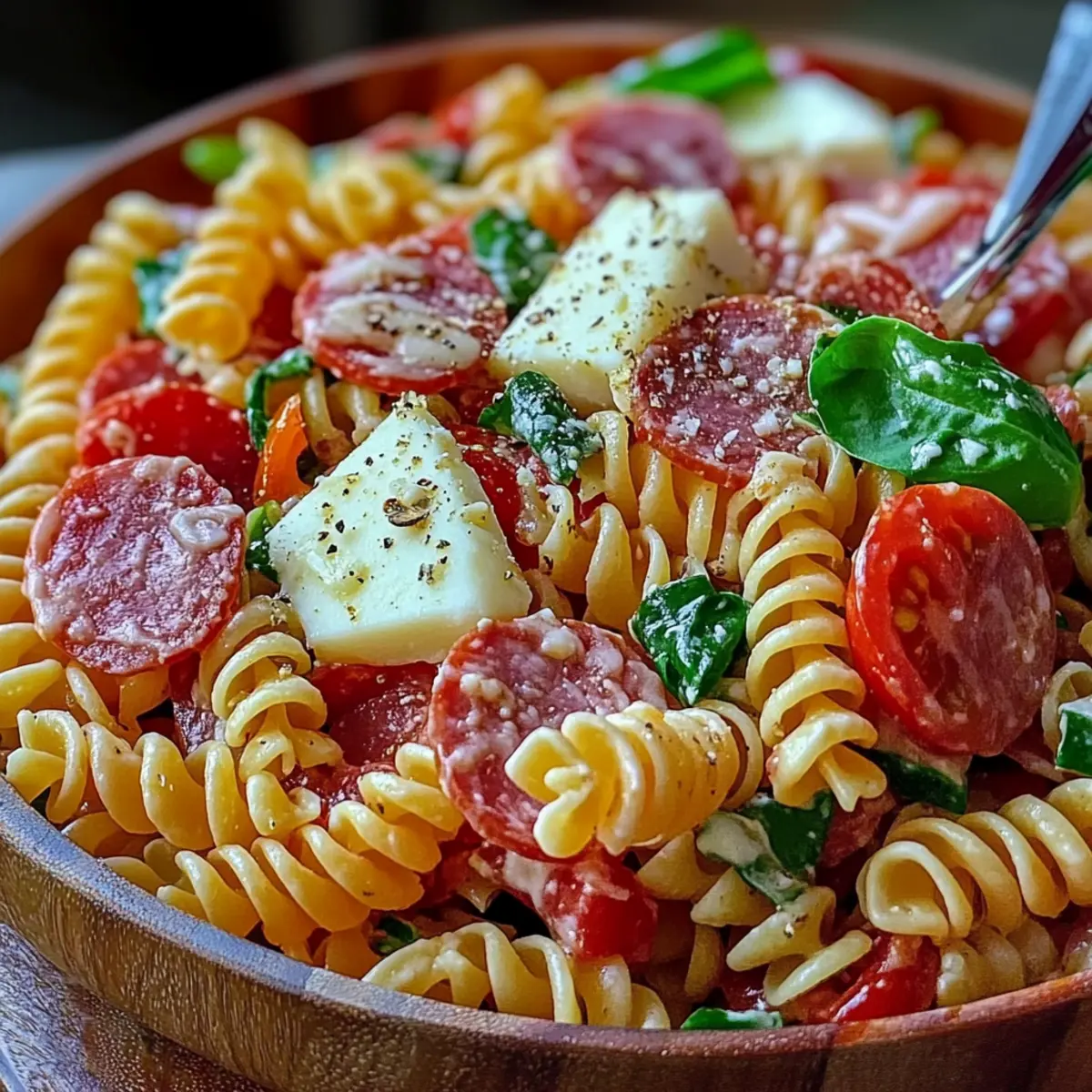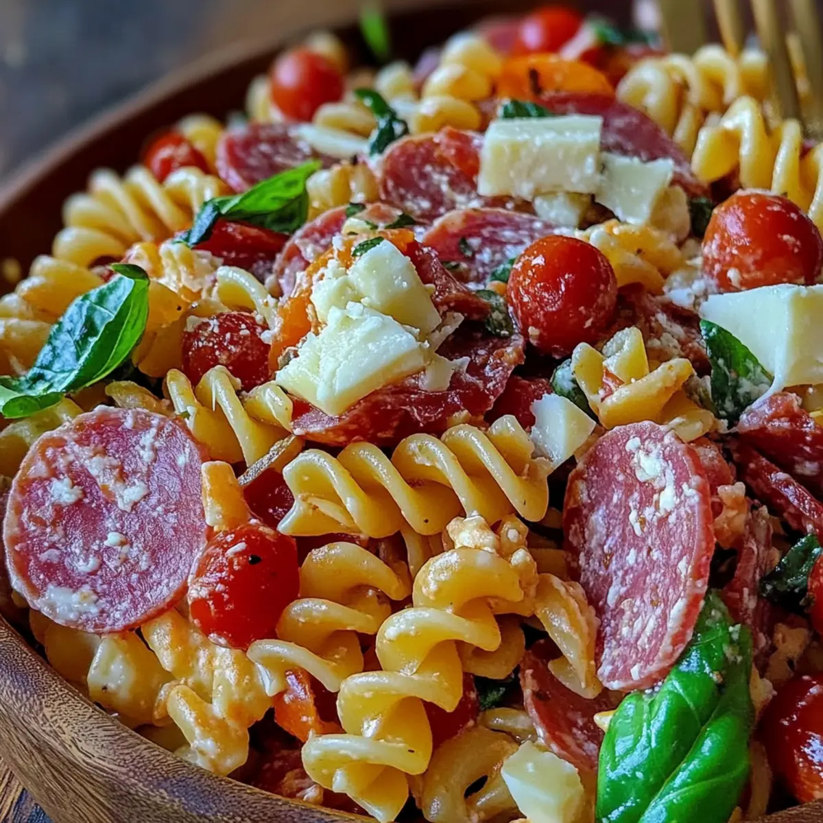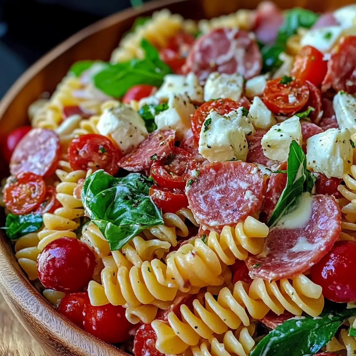 The salad is best enjoyed fresh but can be stored in an airtight container in the fridge for up to 2 days. Over time, the flavors become more pronounced, which some folks love! Just remember that the pasta may absorb some dressing, so I suggest adding a splash of olive oil and vinegar before serving to refresh it.