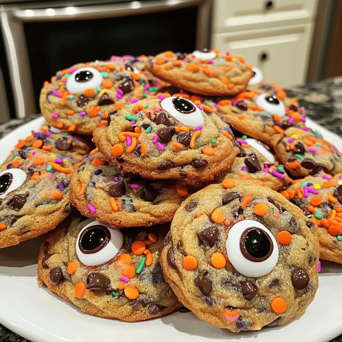 Irresistible Festivity: These Easy Halloween Chocolate Chip Cookies are not just a treat; they’re a celebration on a plate! With their vibrant candy eyes and festive sprinkles, they add a playful vibe to any gathering.