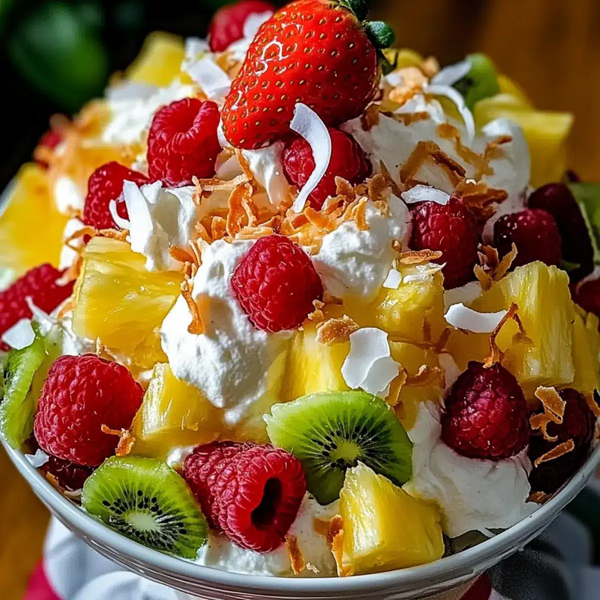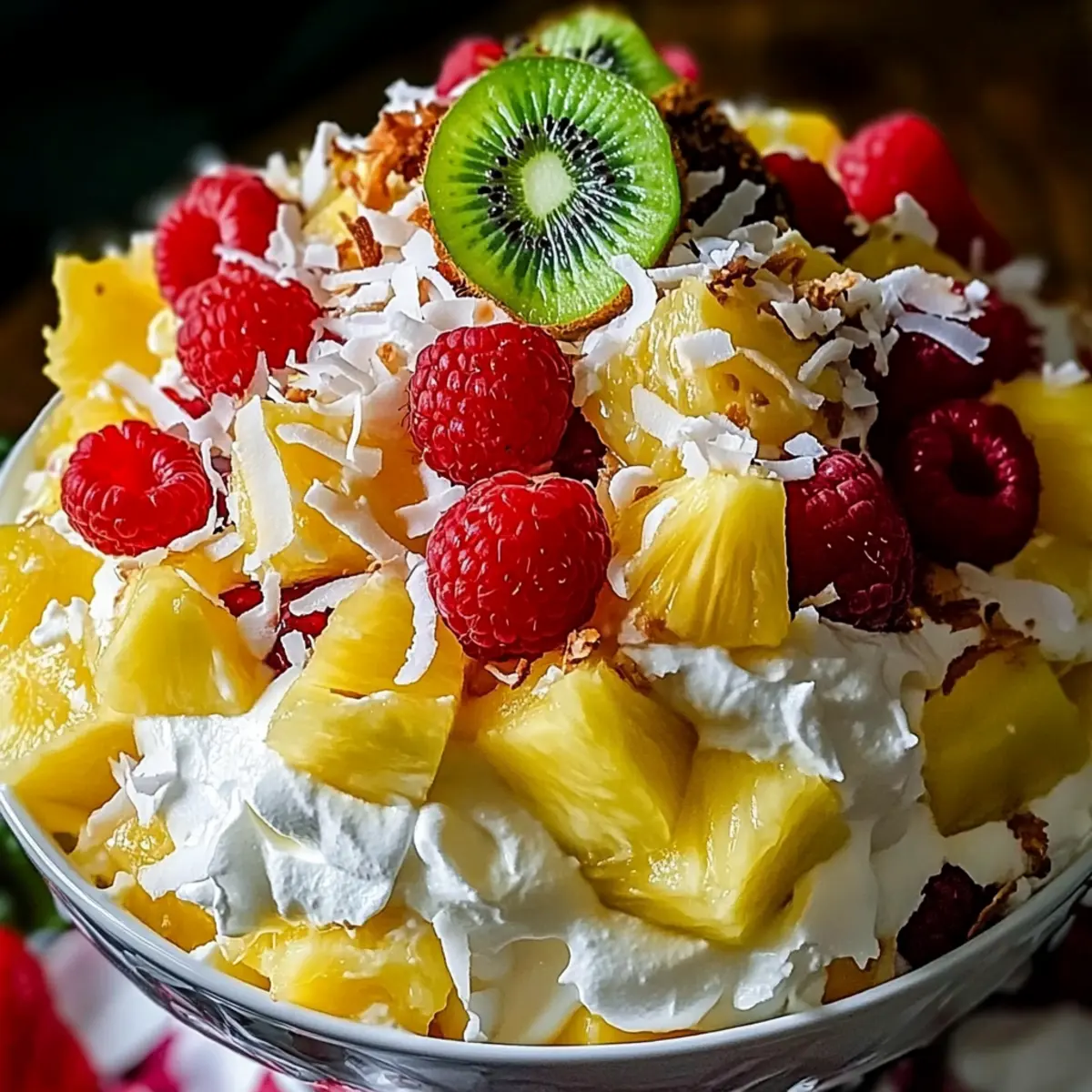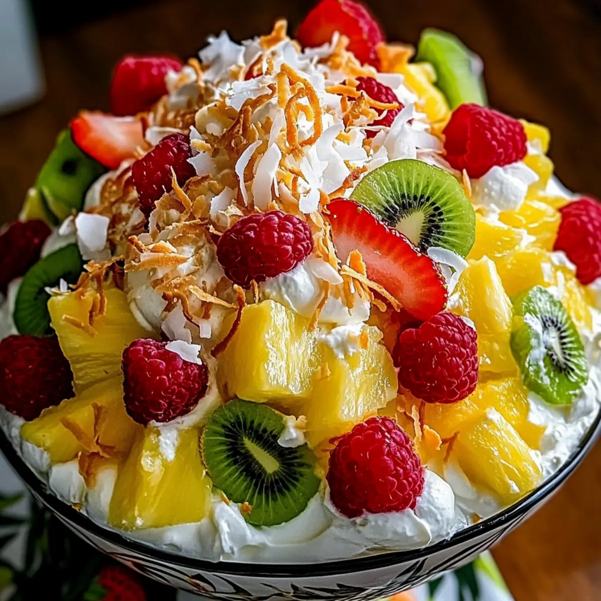 While rummaging through my kitchen one sunny afternoon, I was reminded of a tropical vacation I once took. The warm breezes and vibrant fruit stands inspired me to whip up a refreshing Hawaiian Cheesecake Salad—an adventure that quickly transformed into the most delightful no-bake dessert. This salad combines luscious pineapples, juicy strawberries, tangy kiwi, and tart raspberries, all enveloped in a creamy cheesecake-flavored surprise that’s simply irresistible. Not only is it perfect for summer gatherings, but it also brings a refreshing flair to weeknight dinners, making it a blend of sweet indulgence and hassle-free preparation. The best part? You can easily customize it with your favorite fruits or even add a touch of toasted coconut for a delightful twist. Are you ready to take your taste buds on a tropical getaway? Let’s dive into this easy and scrumptious recipe!