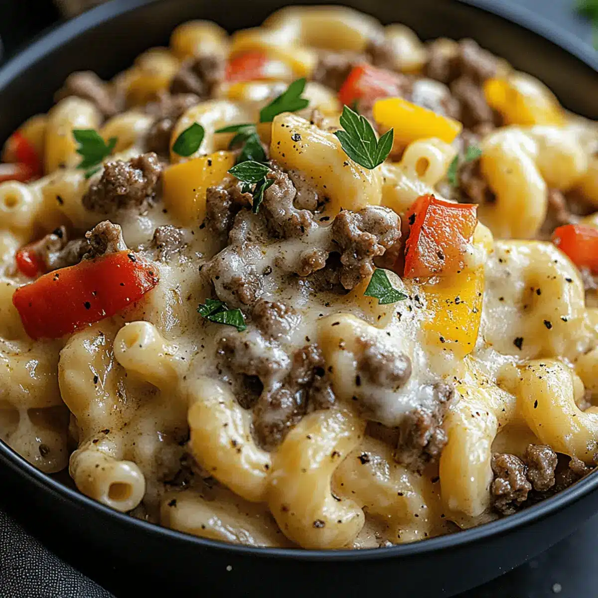 High-Protein Creamy Philly Cheesesteak Mac & Cheese Bliss