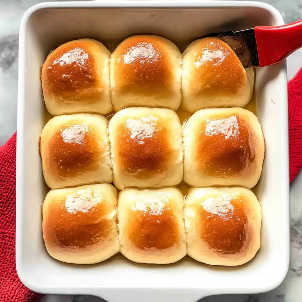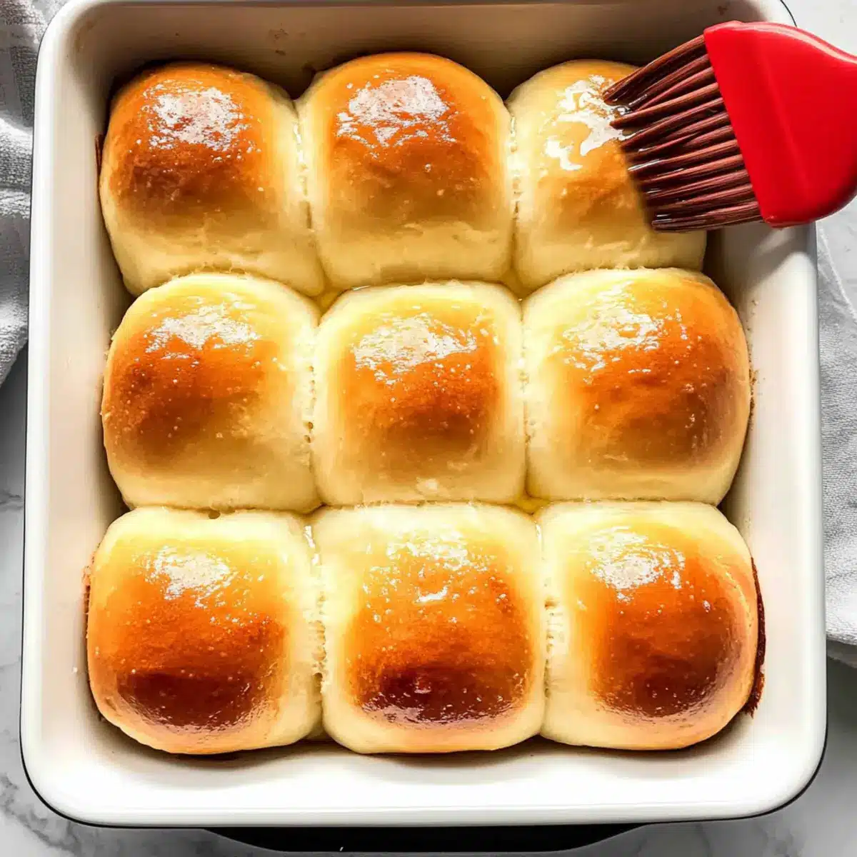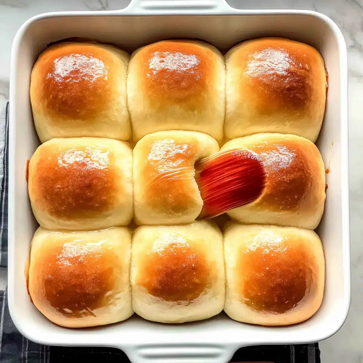 Once baked, remove the pan from the oven and immediately brush the tops of your rolls with melted butter for a rich flavor. Allow the homemade dinner rolls to cool slightly in the pan before transferring them to a wire rack. This final touch ensures a delectable, buttery finish that enhances their already irresistible softness.