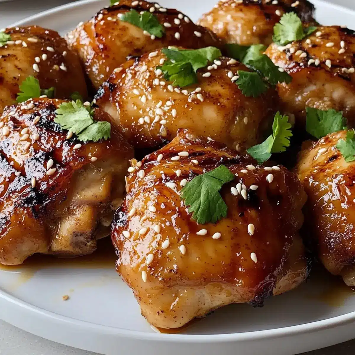 - For grilling, place the marinated chicken thighs skin-side down on the grill. Cook for 6–8 minutes each side, until skin is crispy and internal temperature reaches 165°F. For roasting, arrange skin-side up on a baking sheet. Roast for 35–40 minutes, basting with leftover marinade.
