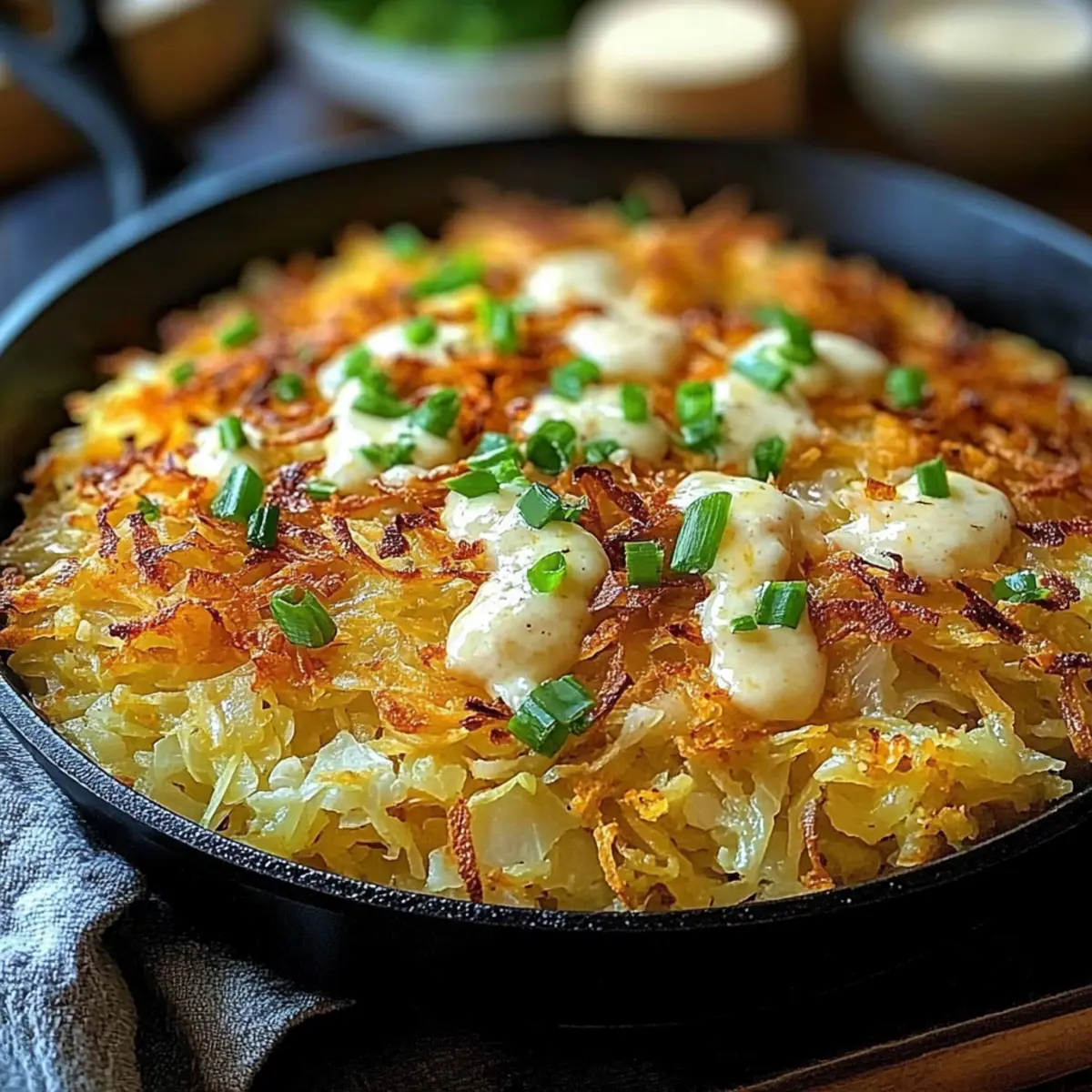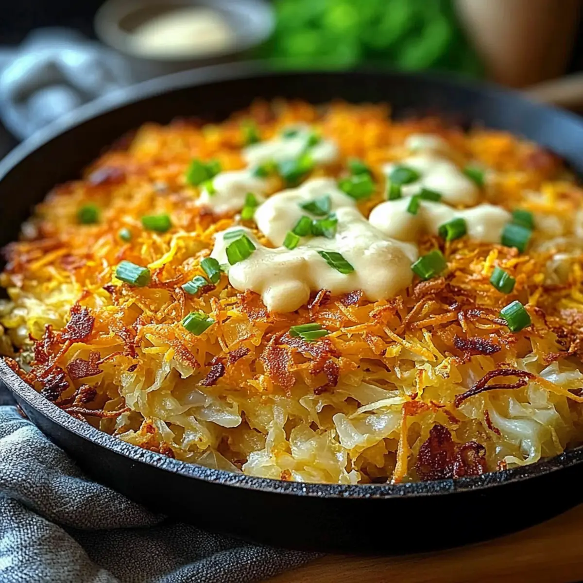 Crispy Irish Cheddar & Cabbage Hash Brown Skillet Delight