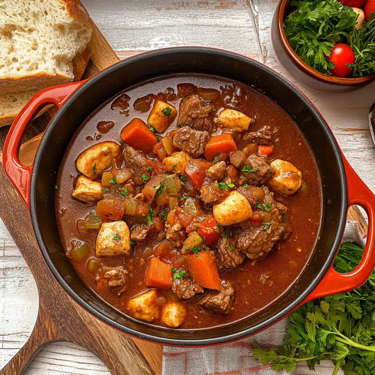 The moment the rich, savory aroma of Old-fashioned Mulligan Stew fills your kitchen, it feels like a warm embrace from cherished memories. This hearty one-pot meal is not just a dish; it’s a nostalgic journey that brings family and friends together, celebrating the art of slow cooking. With tender chunks of beef and chicken swimming in a thick, gravy-rich base, every spoonful is a reminder of simpler times. One of the best perks of Mulligan Stew is its flexibility—feel free to toss in whatever vegetables you have on hand! Plus, it’s a meal that’s incredibly easy to clean up afterward, allowing you to enjoy more time with loved ones rather than scrubbing pots. Are you ready to create this cozy classic that’s sure to become a favorite in your home?