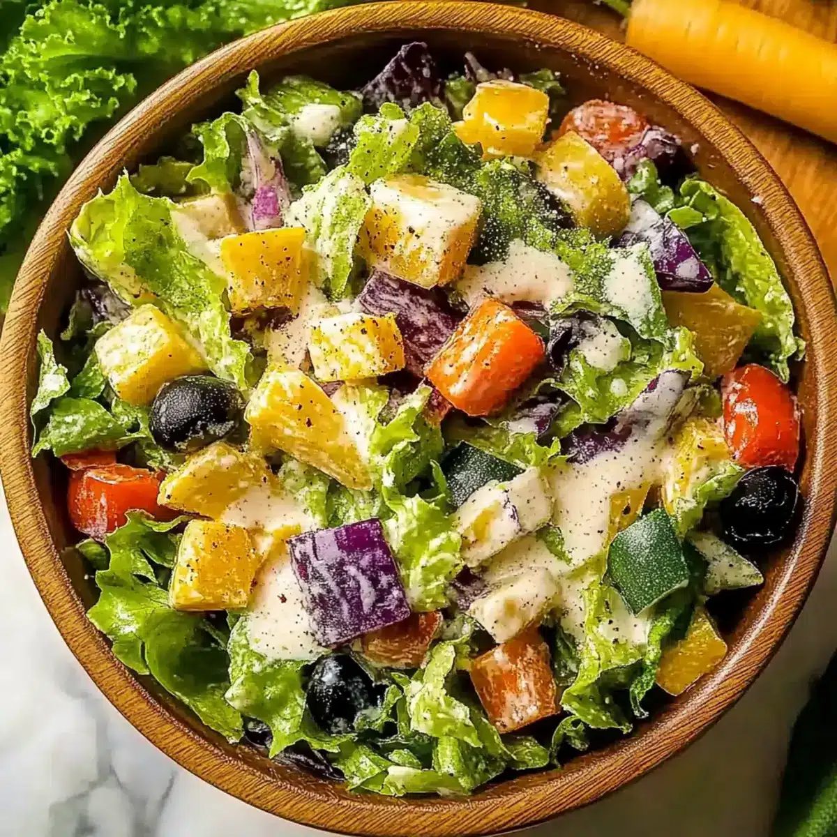 • Lettuce – The base of the salad, providing that classic crispness; mix iceberg and romaine for extra nutrition.