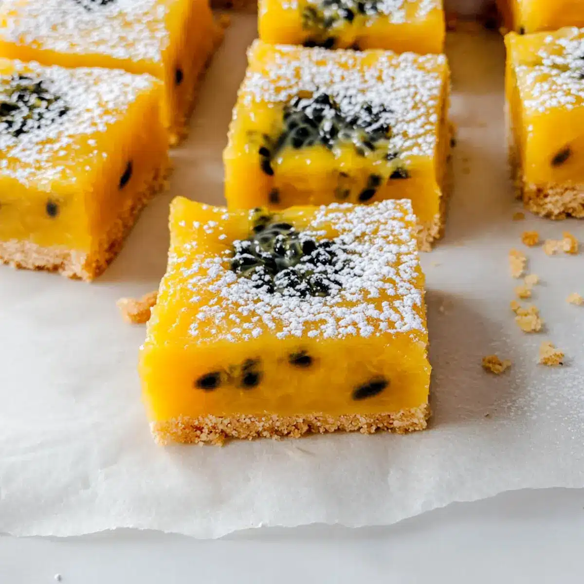Absolutely! You can freeze your Passion Fruit Bars for up to 3-4 months. To do so, cut them into squares and wrap each piece tightly in plastic wrap. Place the wrapped bars in a freezer-safe container to prevent freezer burn. When you’re ready to indulge, just transfer them to the fridge overnight to thaw, and they’re good to go!