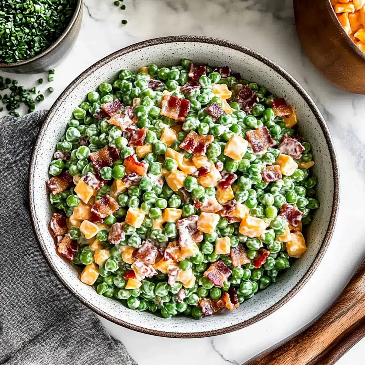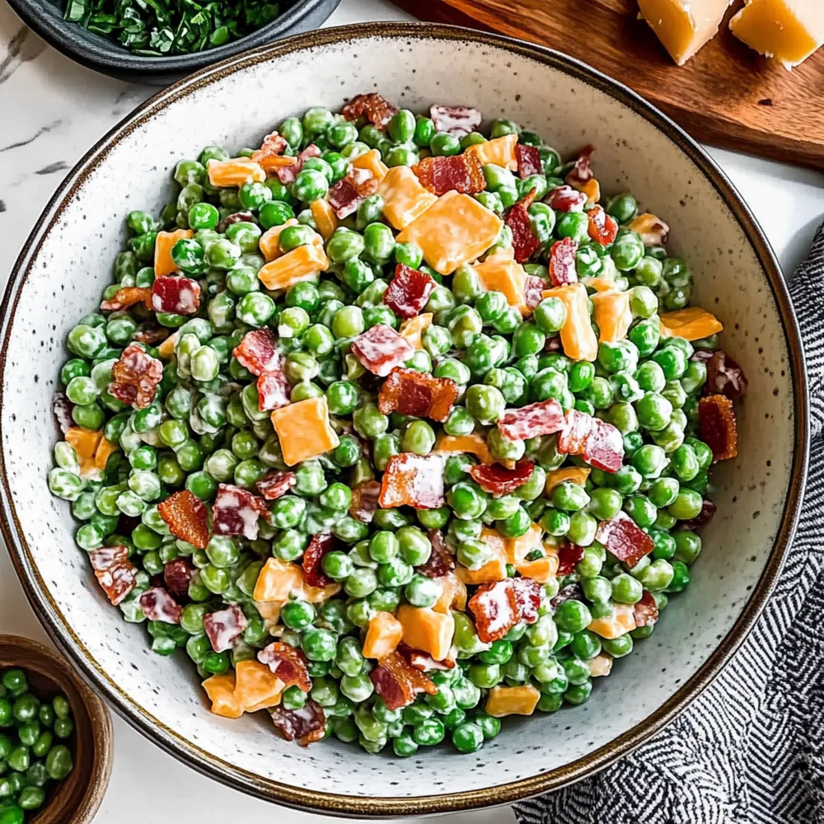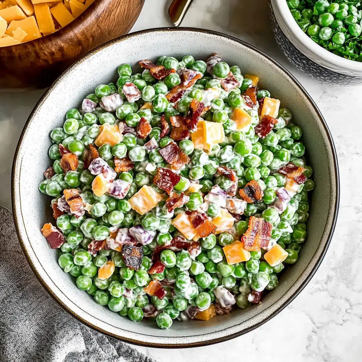 As I was rummaging through my fridge the other day, I unearthed a bag of frozen peas that brought back memories of spring picnics filled with laughter and delicious food. That’s when the idea hit me: why not whip up a refreshing Creamy Pea Salad? This delightful dish combines crunchy bacon, sharp cheddar, and a creamy dressing that’s downright irresistible! Aside from being a crowd-pleaser at potlucks, this salad is incredibly adaptable—you can easily customize it with your favorite ingredients. With minimal prep time, it’s a perfect partner for spring gatherings, allowing you to savor the season’s flavors without stressing over lengthy recipes. Ready to discover how to create this deliciously easy pea salad that everyone will love?