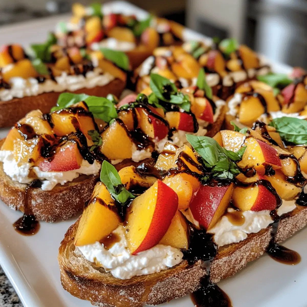 For the finishing touch, drizzle balsamic glaze over the completed bruschetta if desired. This adds a sweet and tangy element that perfectly complements the peaches and ricotta. Serve your Peach Bruschetta immediately to maintain the crispness of the bread, allowing everyone to enjoy this summer delight!