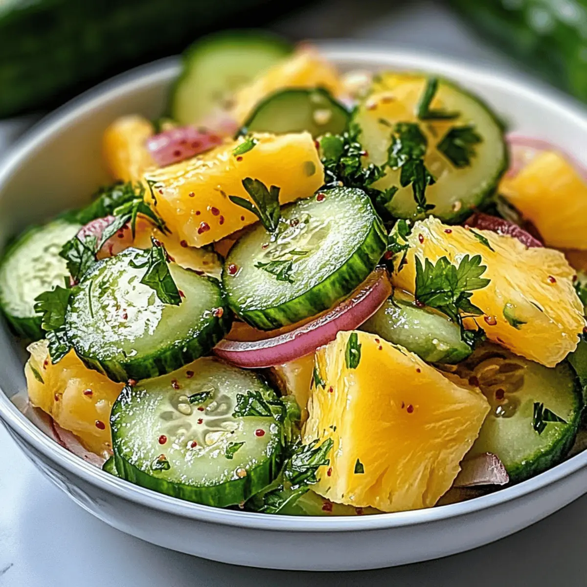 Freshness at its finest: With juicy pineapple and crunchy cucumber, this salad bursts with vibrant flavors that stimulate your senses.
