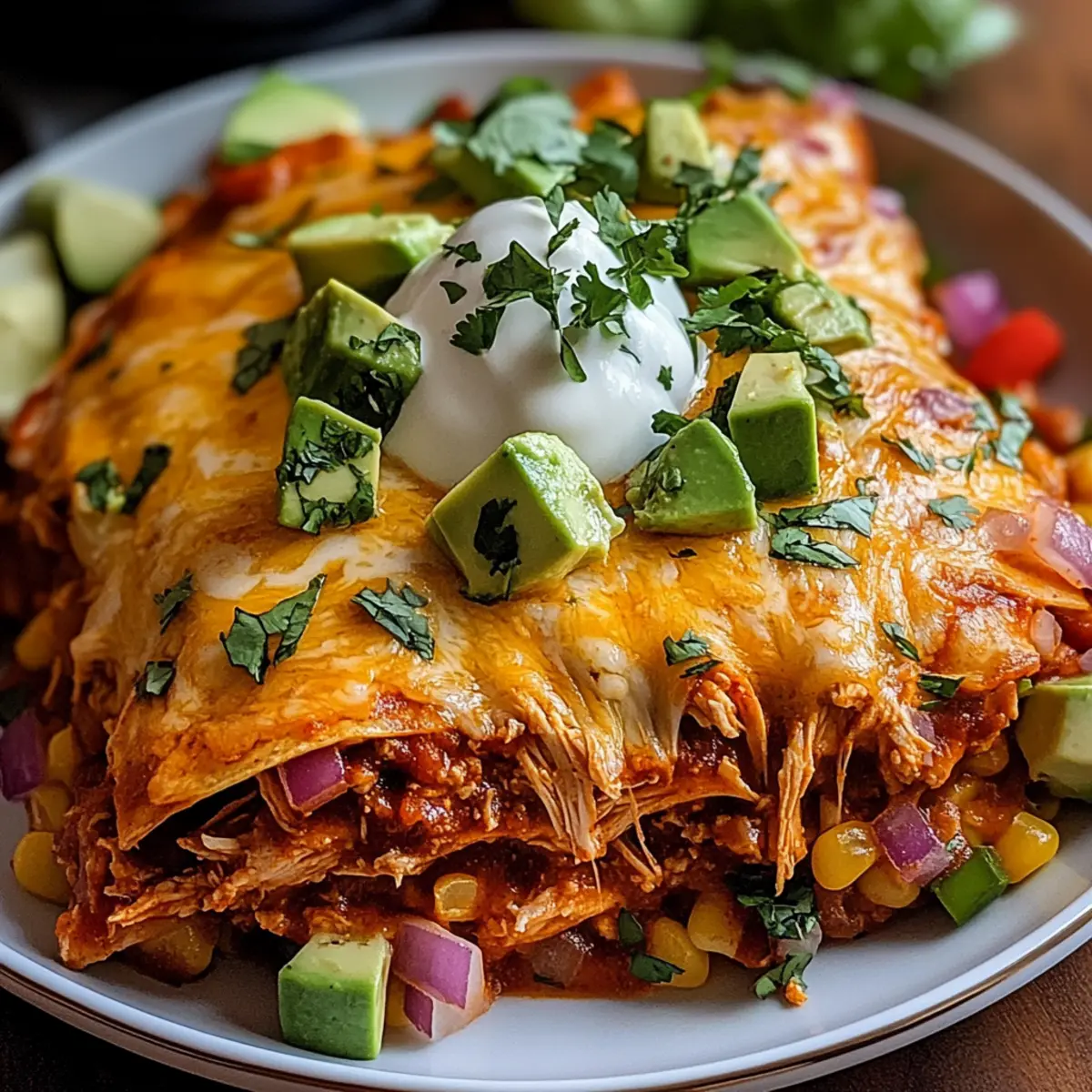 Flavor Explosion: Each layer is packed with savory goodness, thanks to the zesty enchilada sauce and vibrant spices, making every bite an adventure for your taste buds.