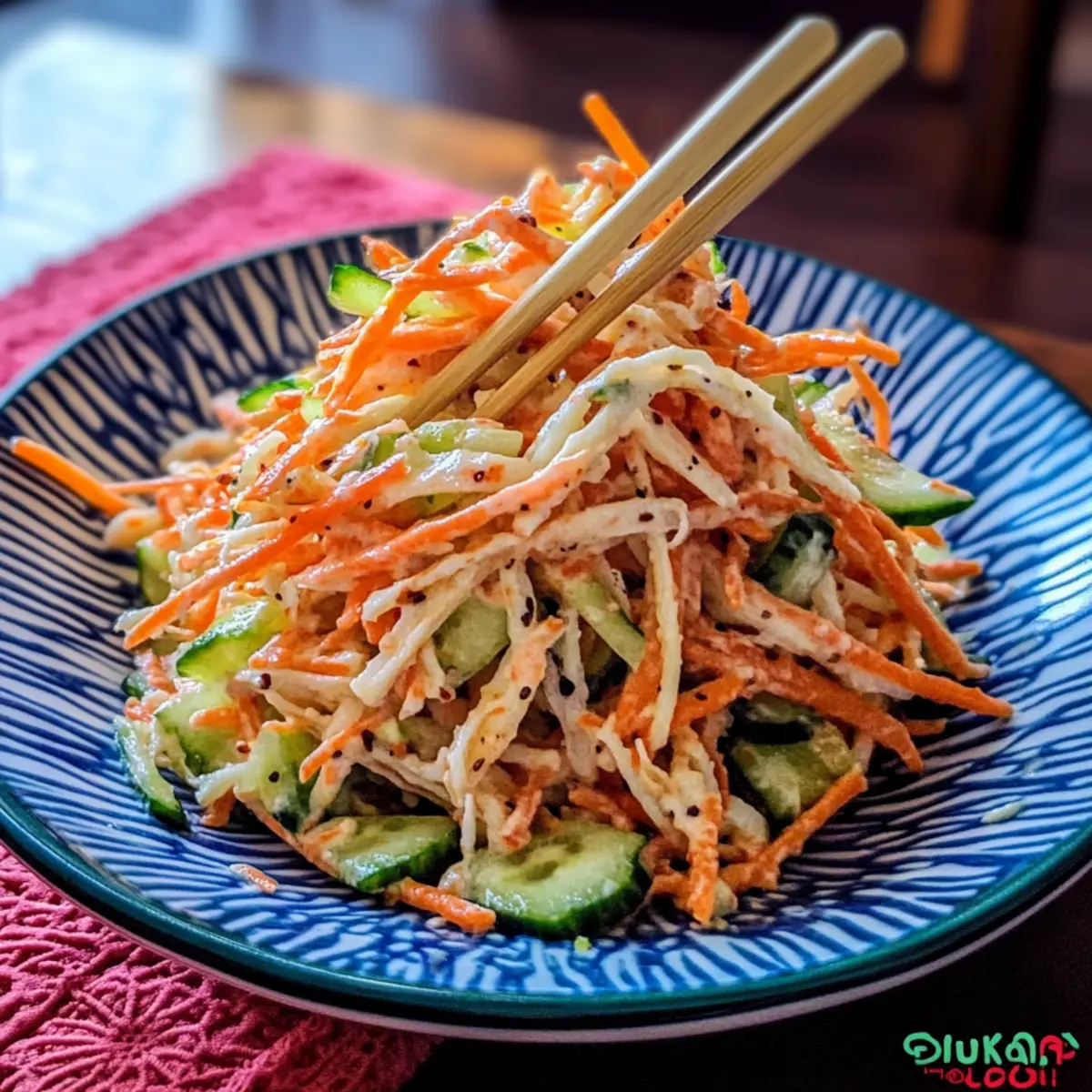 Gentle Mixing: Use your hands or a soft spatula to mix the salad. This helps retain the integrity of the julienned veggies and kani.