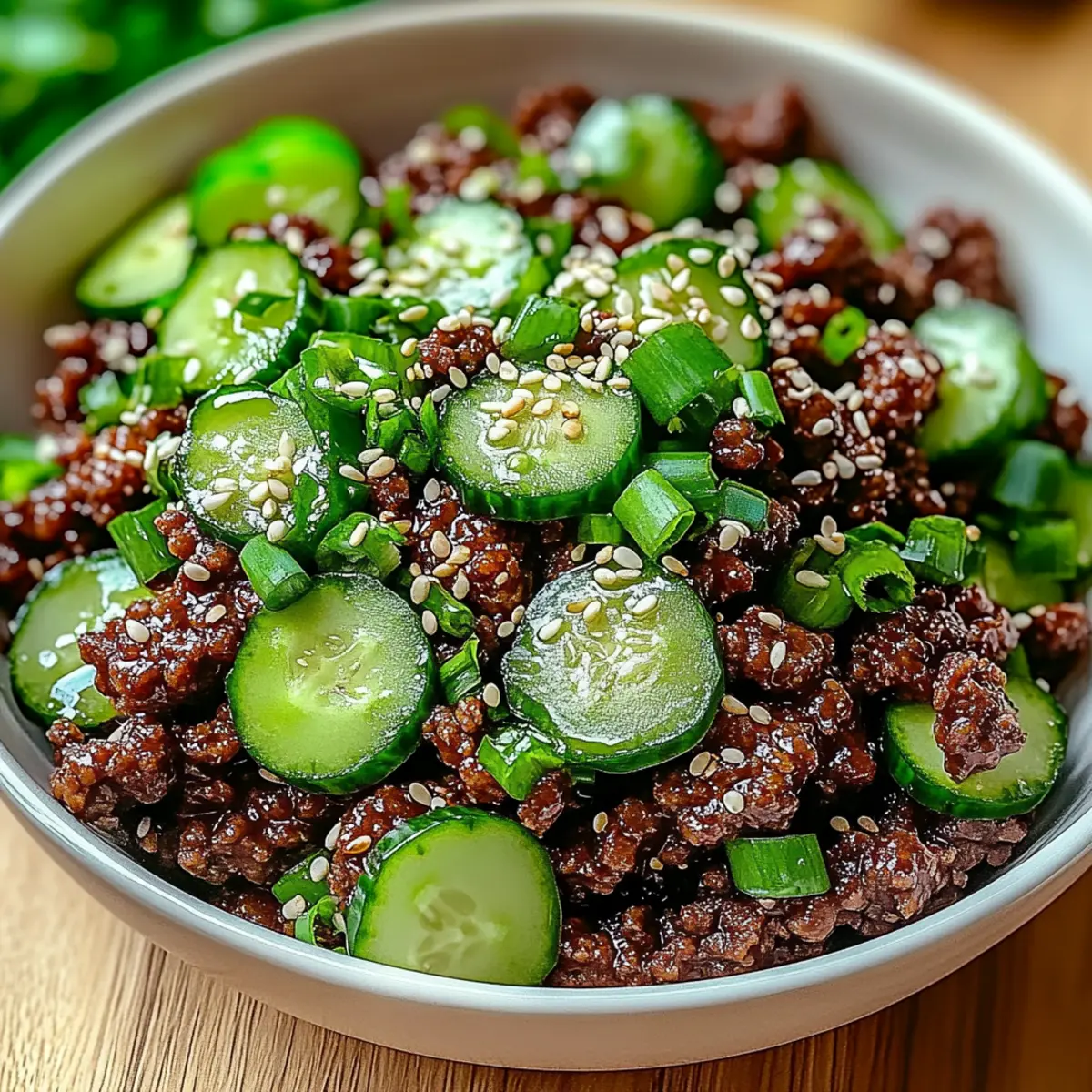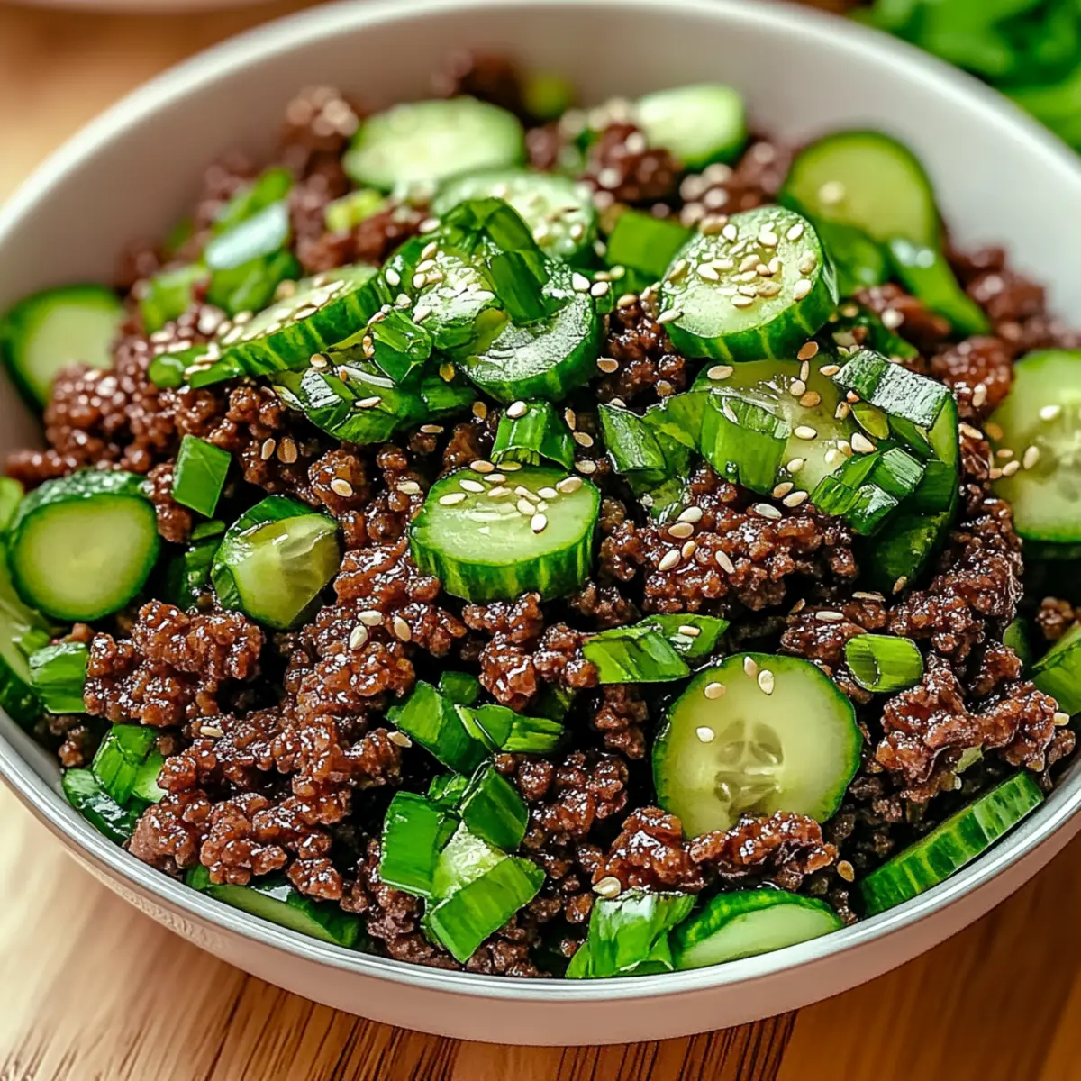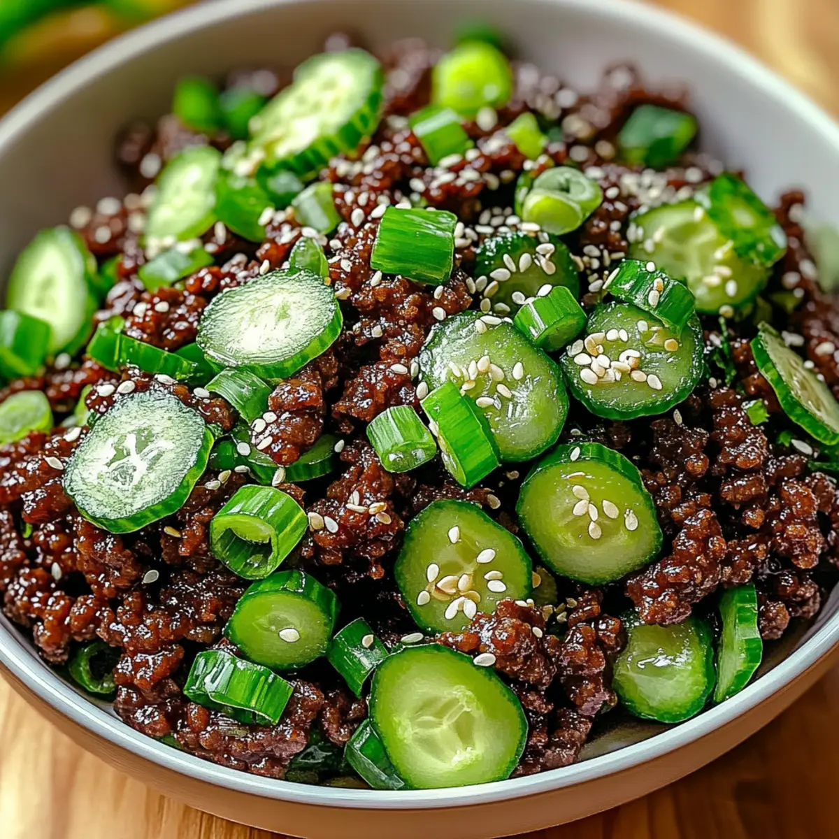 Spicy Keto Korean Ground Beef with Crunchy Cucumber Salad