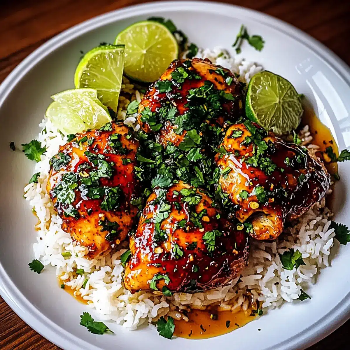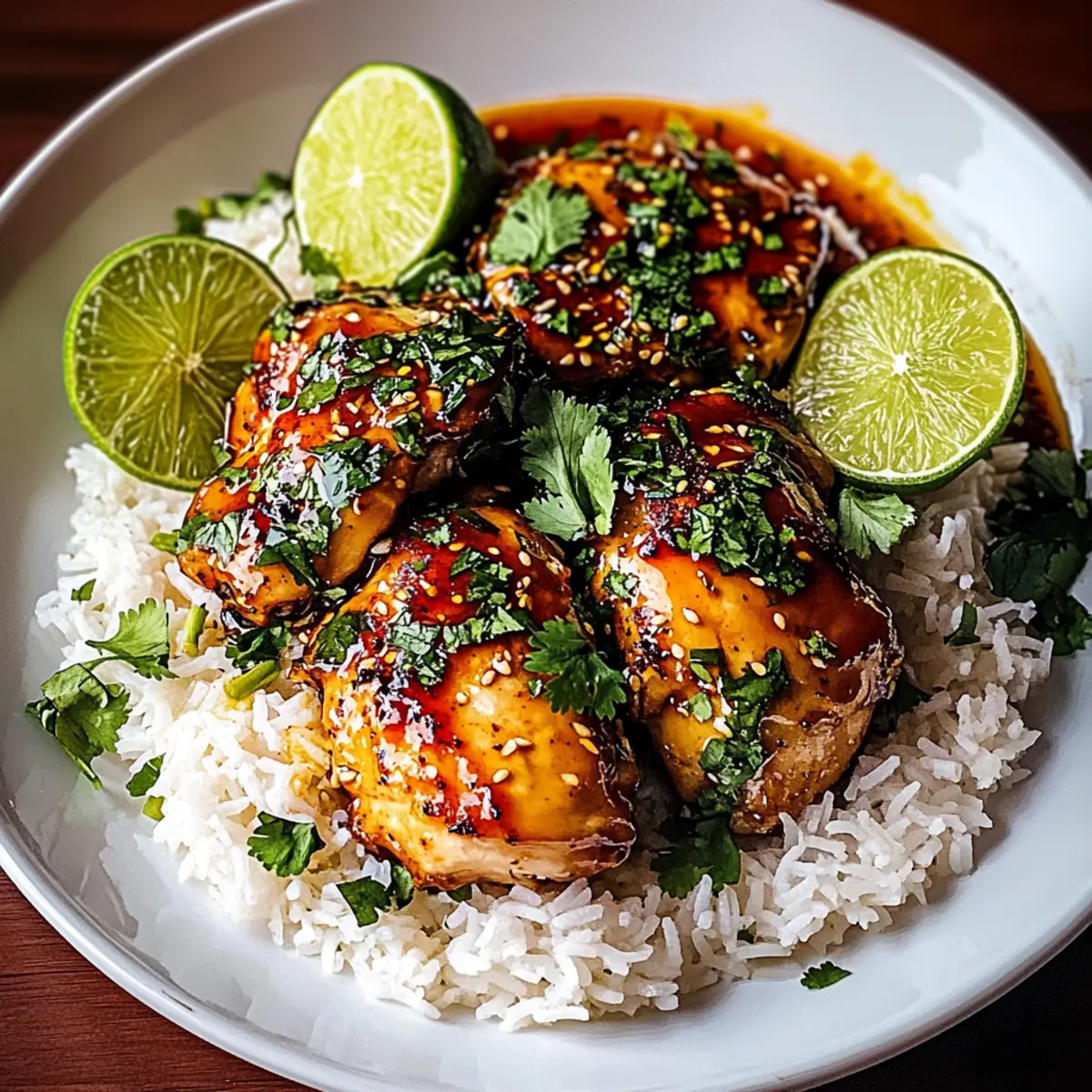 Finally, fluff the coconut rice with a fork to separate the grains, and serve it alongside the spicy maple chicken. For a fresh touch, garnish with chopped cilantro and lime wedges, adding bright notes that perfectly complement the rich flavors of your meal. Your Spicy Maple Chicken & Coconut Rice is now ready to be enjoyed!