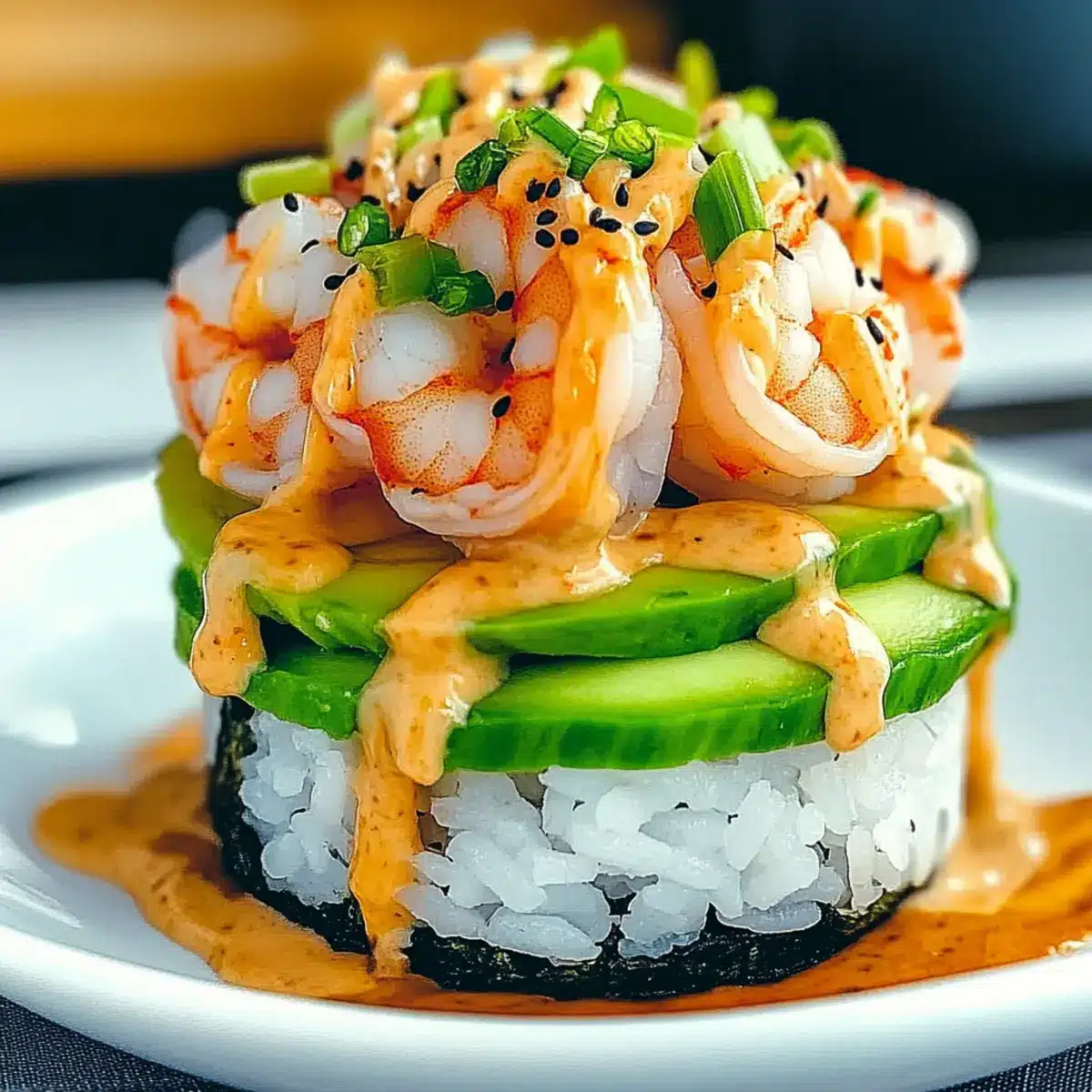 Vibrant Flavors: Each bite of these Spicy Shrimp Sushi Stacks bursts with fresh, bold flavors from shrimp, creamy avocado, and crunchy cucumber. It’s a harmonious blend that brings the taste of sushi right to your kitchen!