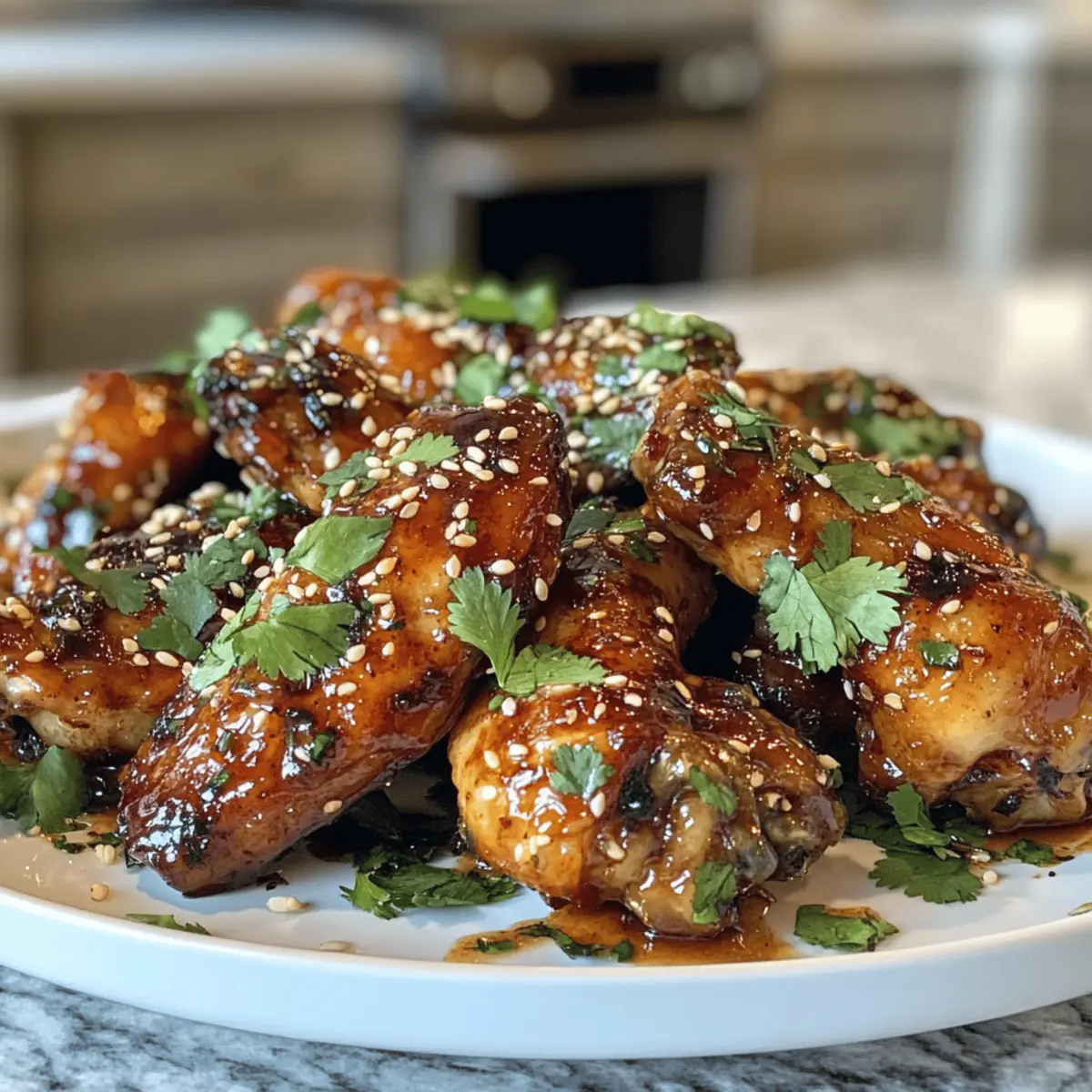 - Remove wings, garnish with sesame seeds and cilantro before serving.