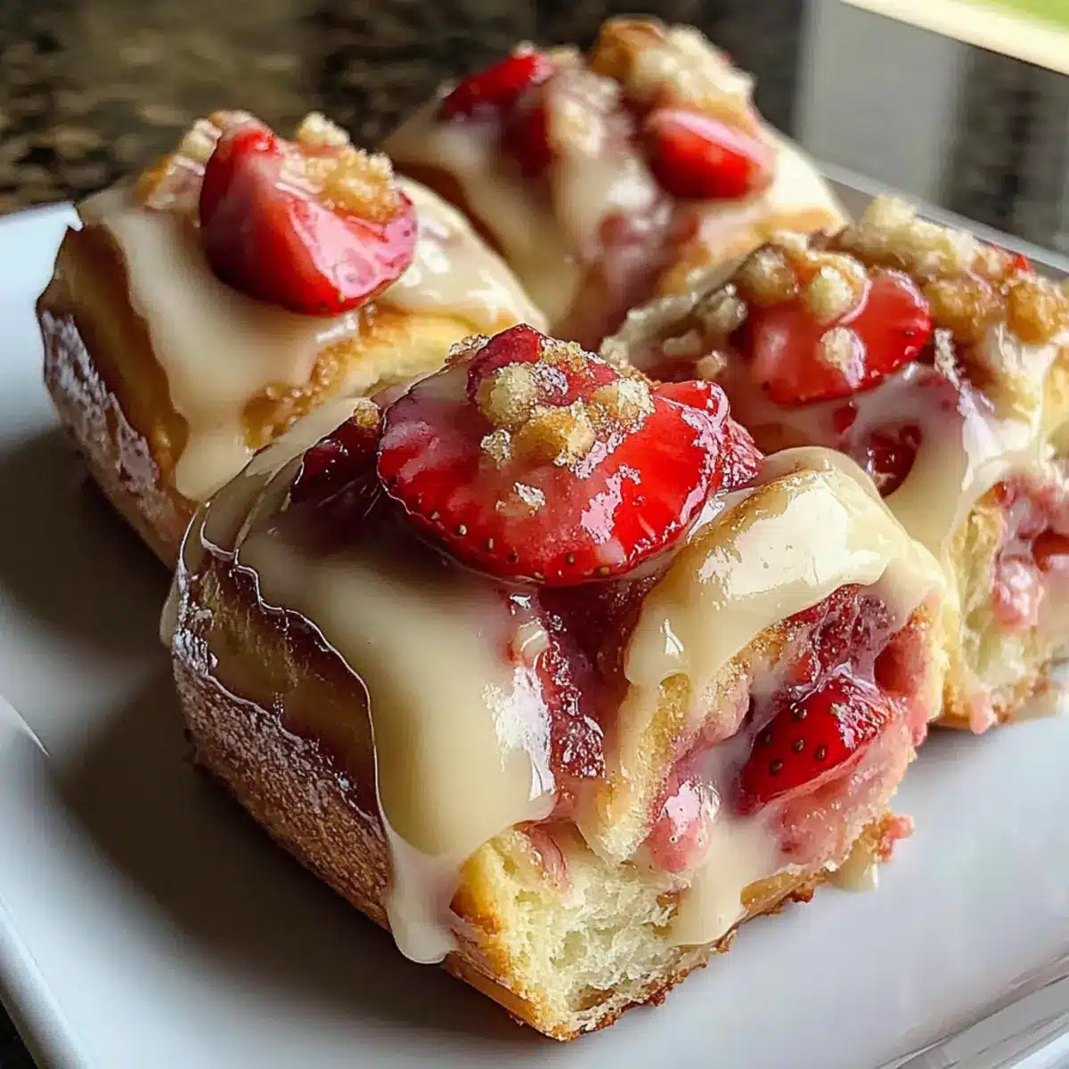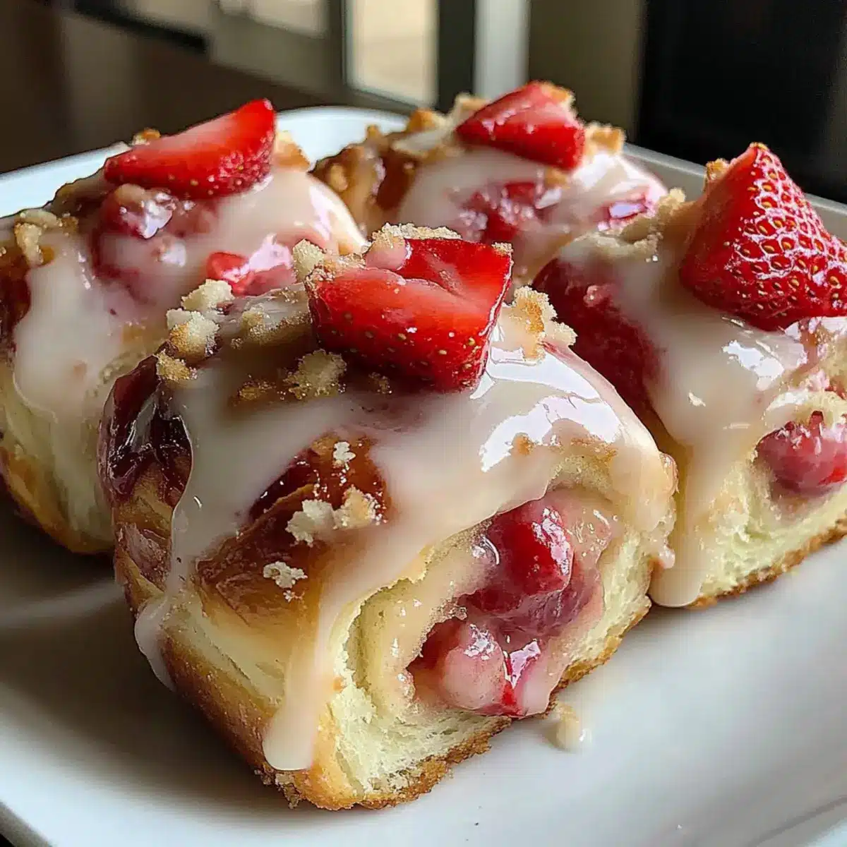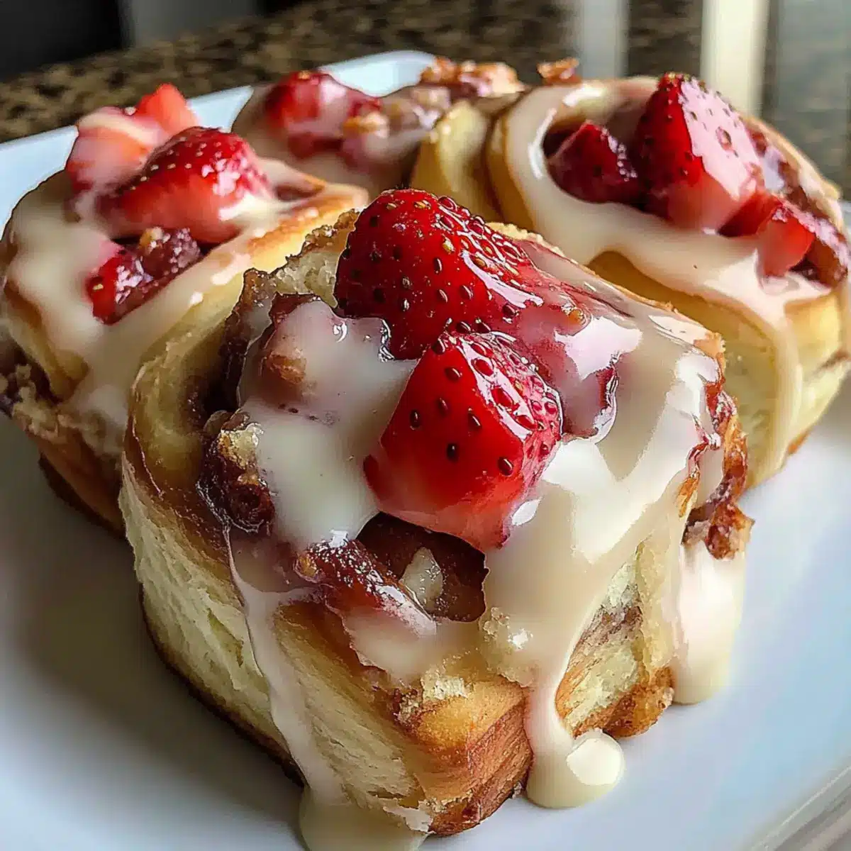 Caramel Drizzle: Instead of a glaze, drizzle warm caramel sauce over the rolls for a decadent finish. The sweet, buttery flavor pairs beautifully with the cream cheese and strawberries for an indulgent dessert.