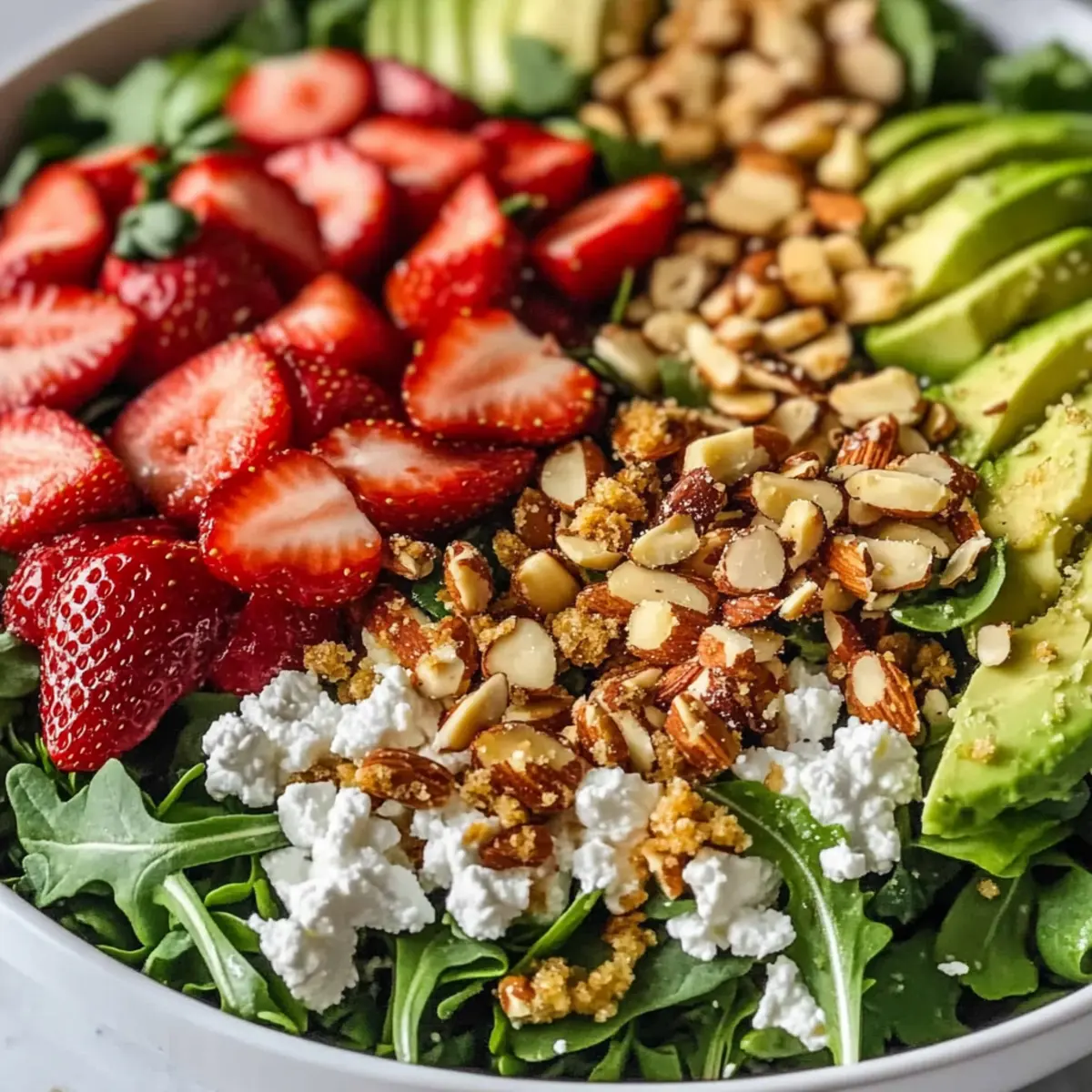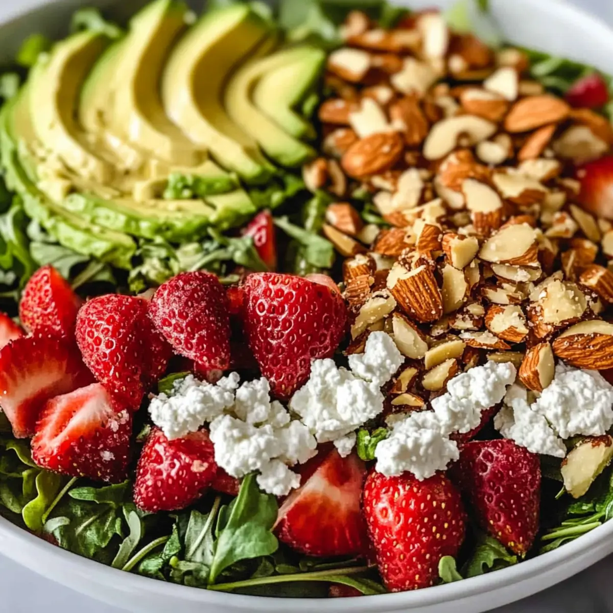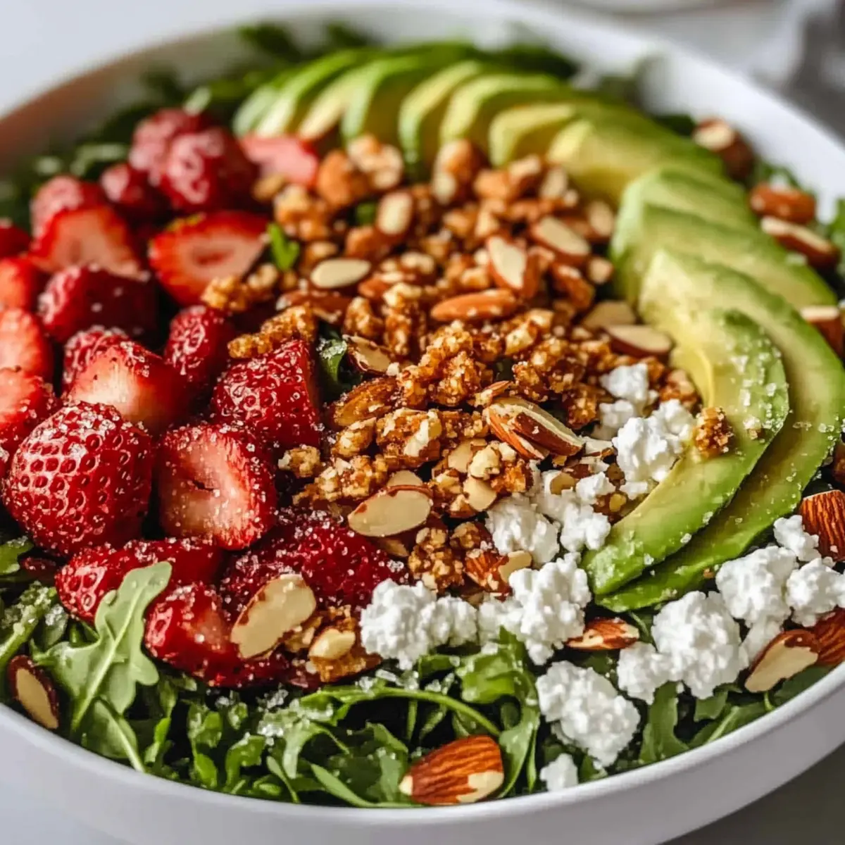 Vibrant Colors: This salad’s bright mix of strawberries, creamy avocado, and crunchy almonds makes it visually stunning—ideal for impressing guests at gatherings.