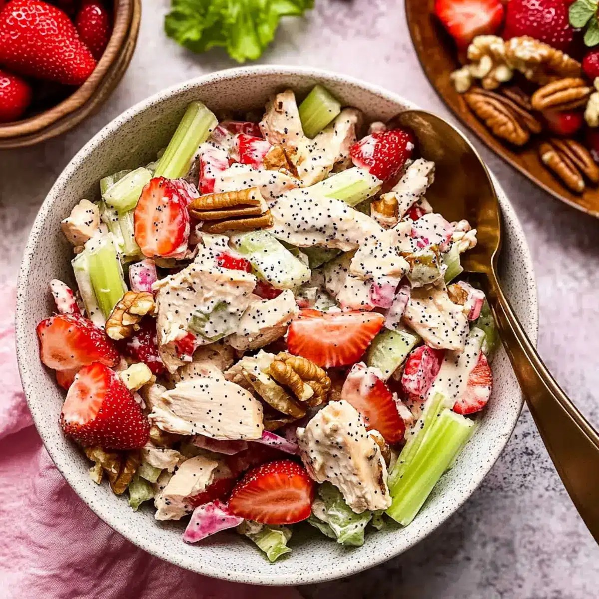 Whether you’re preparing this as a quick meal or a party pleaser, the Strawberry Poppy Seed Chicken Salad is a delightful option!