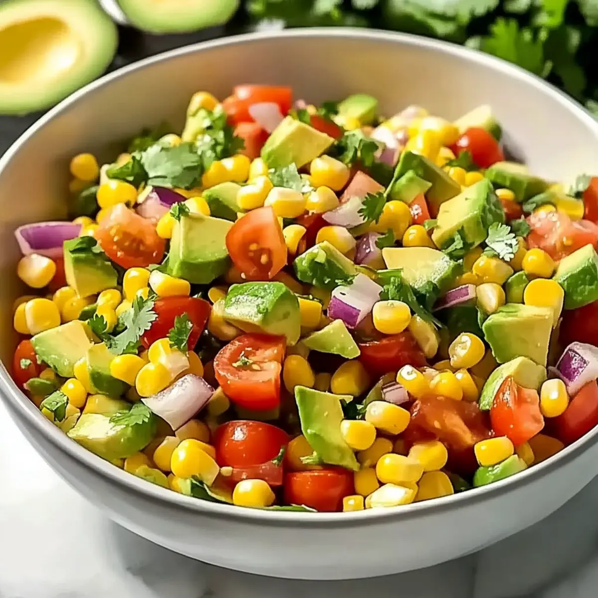 Freshness is key! With seasonal ingredients like sweet corn and ripe avocados, every bite bursts with flavor and nutrition. Versatile enough for any occasion, whether summer BBQ or casual family dinner, this salad always impresses. Quick and Easy prep means you can whip it up in under 15 minutes—perfect for those busy summer days. Nutritious and satisfying, it’s a light choice that won’t weigh you down, and you can even jazz it up with variations, like adding grilled chicken or shrimp for extra protein. Hungry for more vibrant dishes? Check out my Lime Chicken Avocado or Mexican Street Corn for delightful inspiration!