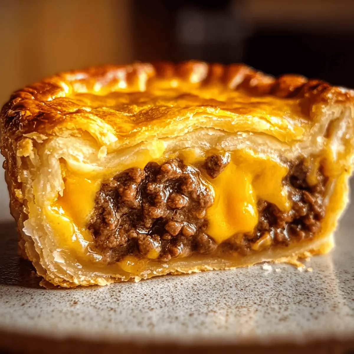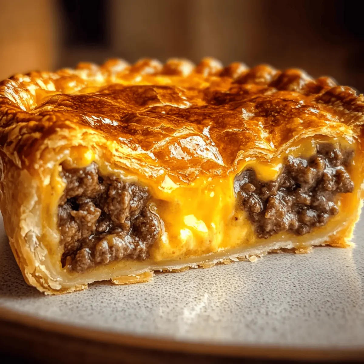 Oh no! If your pie turns out soggy, there are a few tricks to avoid this in the future. First, make sure to drain excess fat from the cooked meat thoroughly. You can also sprinkle a tablespoon of flour or cornstarch over the meat before layering it in the pie dish to absorb moisture. Lastly, ensure that the center of the pie is set before pulling it from the oven; look for a golden crust without a jiggle!