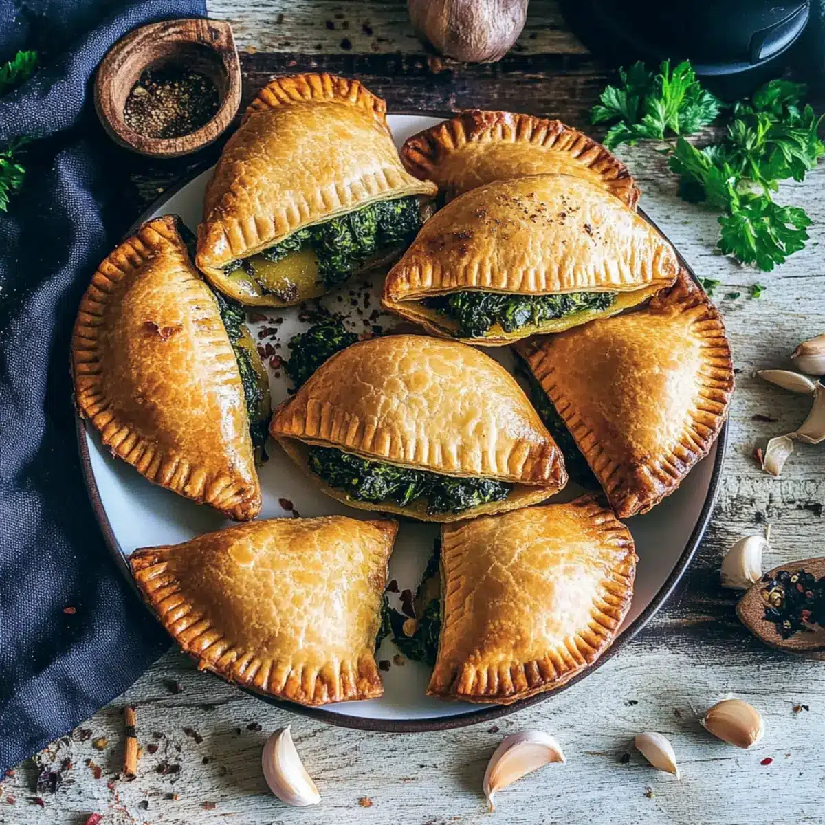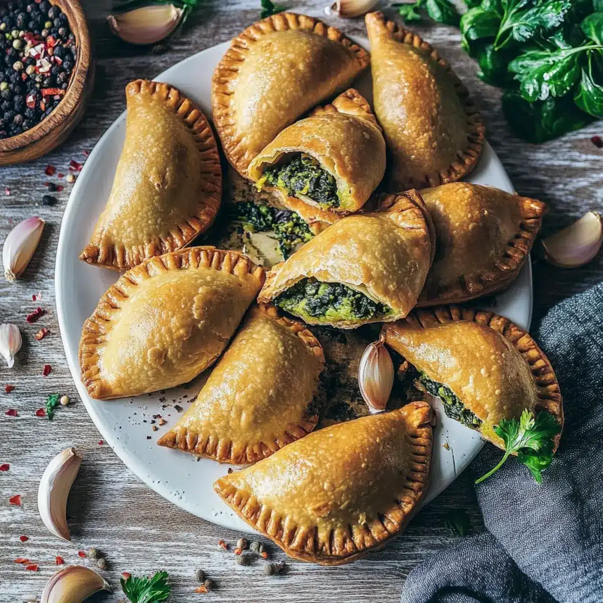 The aroma of garlic swirling through the kitchen can transform an ordinary day into something special. That’s why I love these Vegan Garlic Spinach Empanadas—each bite offers a warm embrace of flaky pastry filled with a savory blend of spinach and seasonings. Not only are they a delightful treat for snacking or entertaining, but they also cater perfectly to any vegan or gluten-free needs, making them an instant crowd-pleaser. Whether you’re craving a light lunch or looking for a healthy game-day appetizer, these empanadas are your go-to choice. Ready to whip up some comforting goodness? Let’s dive into the simple steps to create these delicious little pockets of joy!