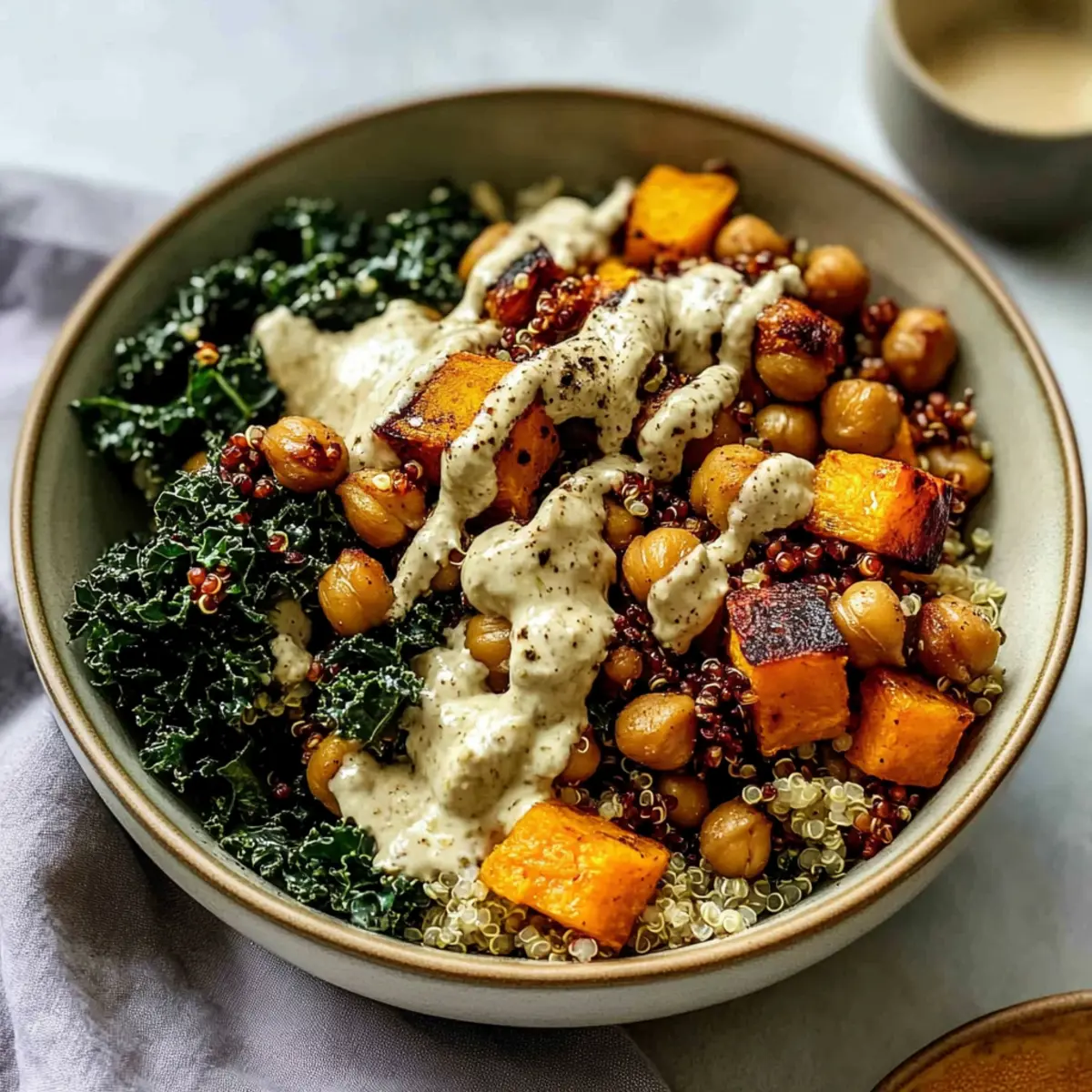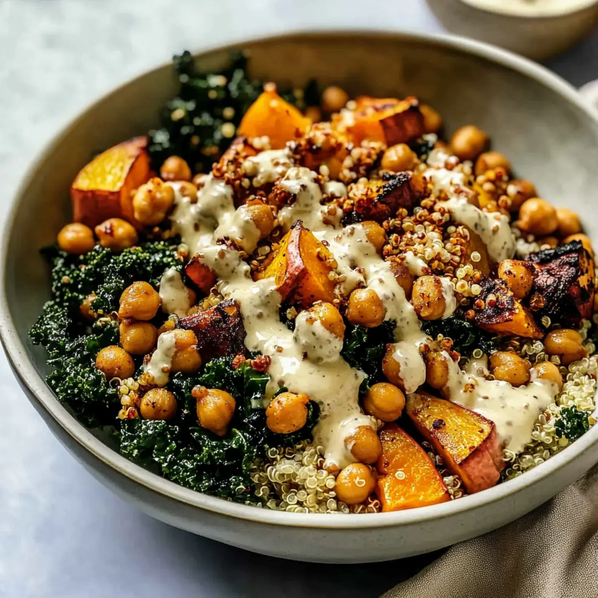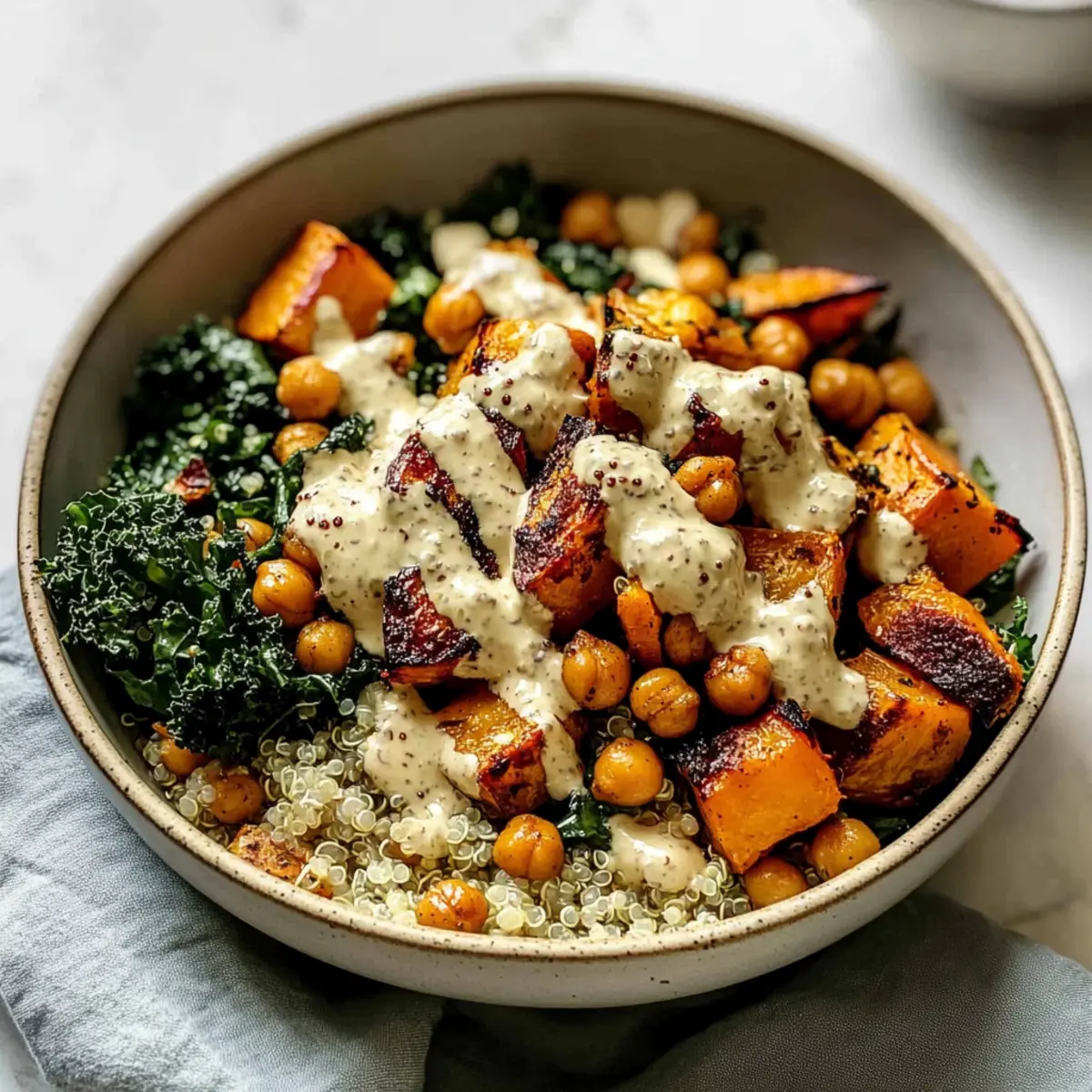 Seasonal Veggies: Swap honeynut squash for roasted brussels sprouts or carrots for a savory change. Their natural sweetness elegantly pairs with the tahini dressing, resulting in a rich tapestry of flavors.