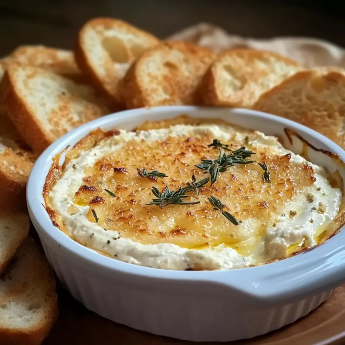 Now it’s time to serve your Warm Boursin Dip with the crispy crostini! Pour your heart into presentation by placing the baked dip alongside the freshly toasted crostini, inviting guests to dive in. This creamy, cheesy delight is sure to be the star of your gathering, with everyone clamoring for more.